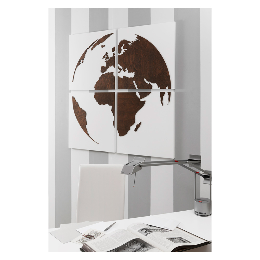 Compoziție înfățișând lumea din lemn alb mat și decor aplicat din lemn wengé.