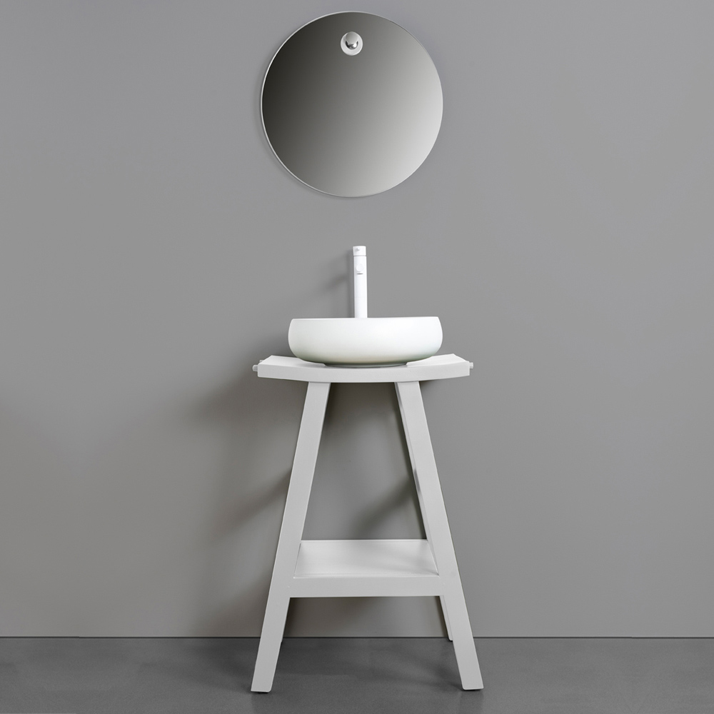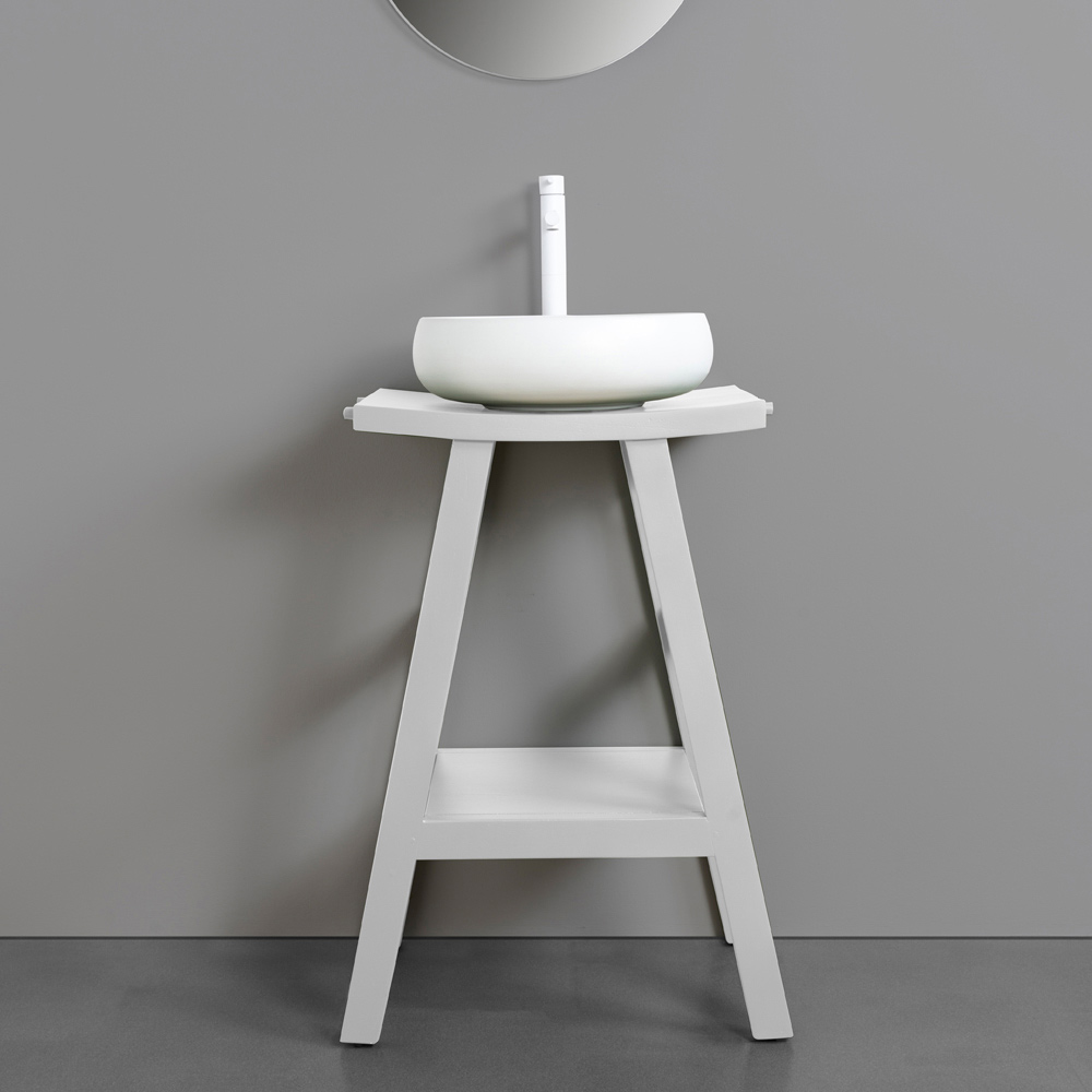 Compozitie baie cu dulap din lemn de tec, chiuveta din lut si accesorii.