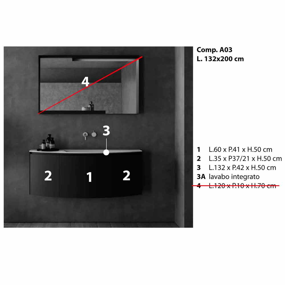 Compoziție de baie suspendată, curbiliniară și cu un design modern, realizată în întregime în Italia.