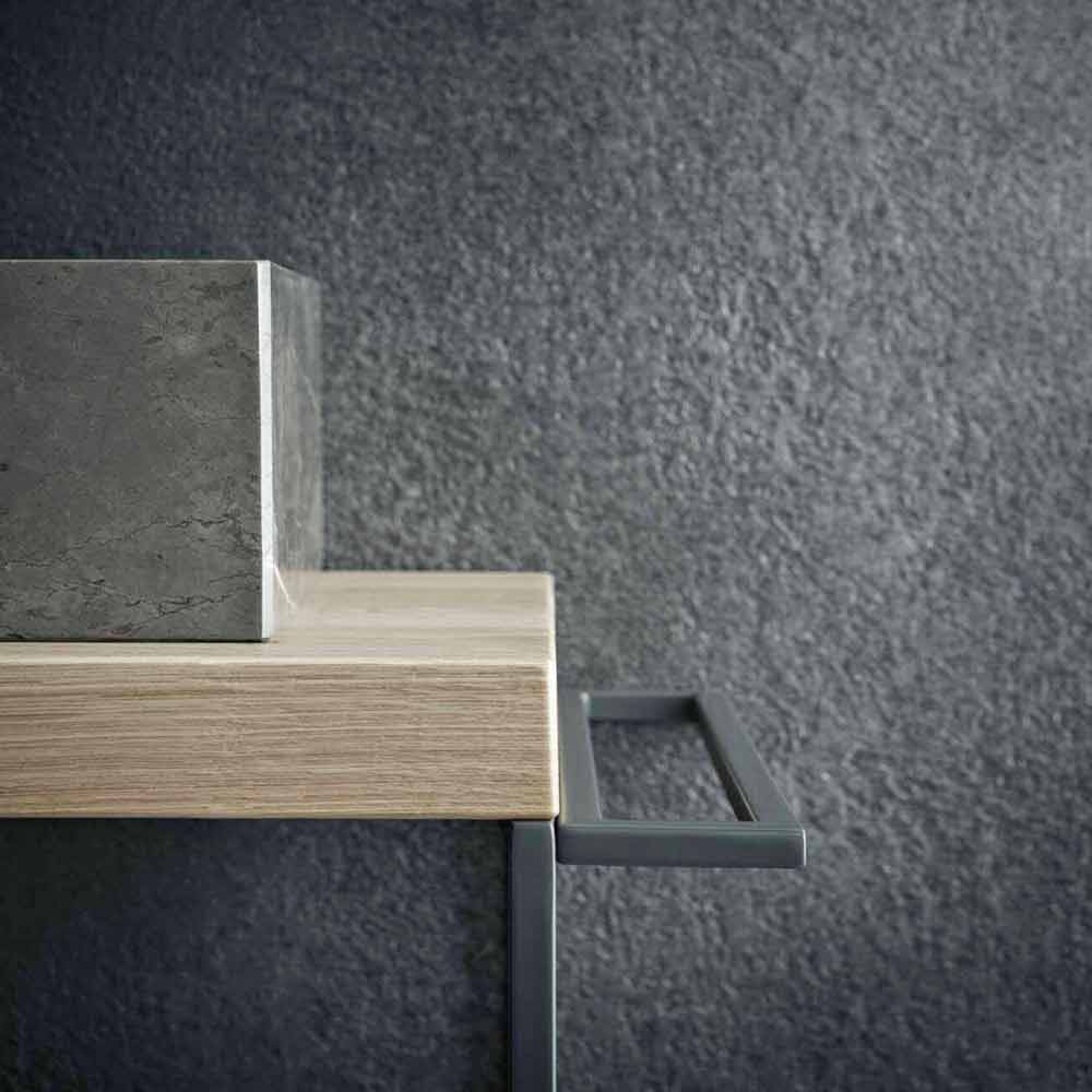 Compoziția este din stejar natural înnodat , lavoare din piatră gri , structuri metalice din lac gri închis mat. Unitate de perete din lac gri închis mat.