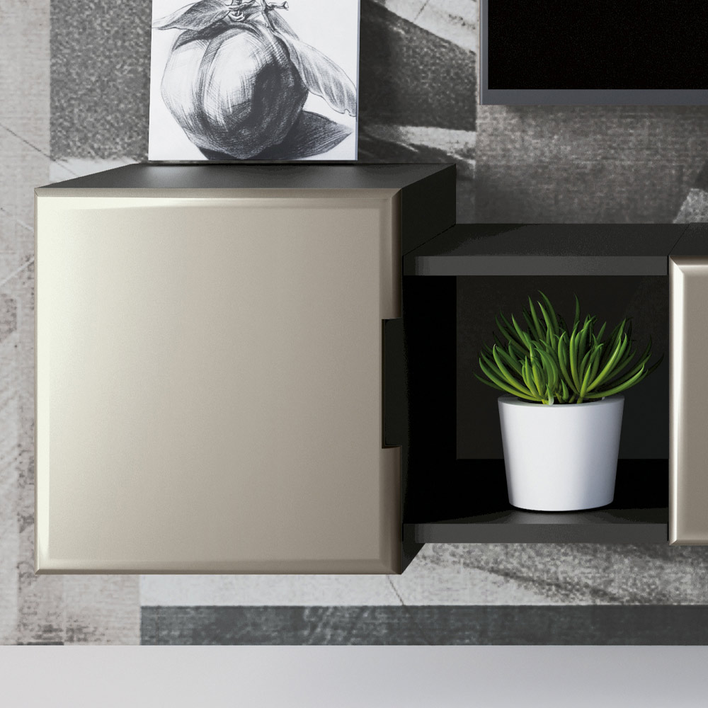 - unitate de perete cu usa cu deschidere in stanga si profile sapun, finisaj NICKEL + CARBONE, corp si fronturi din MDF
