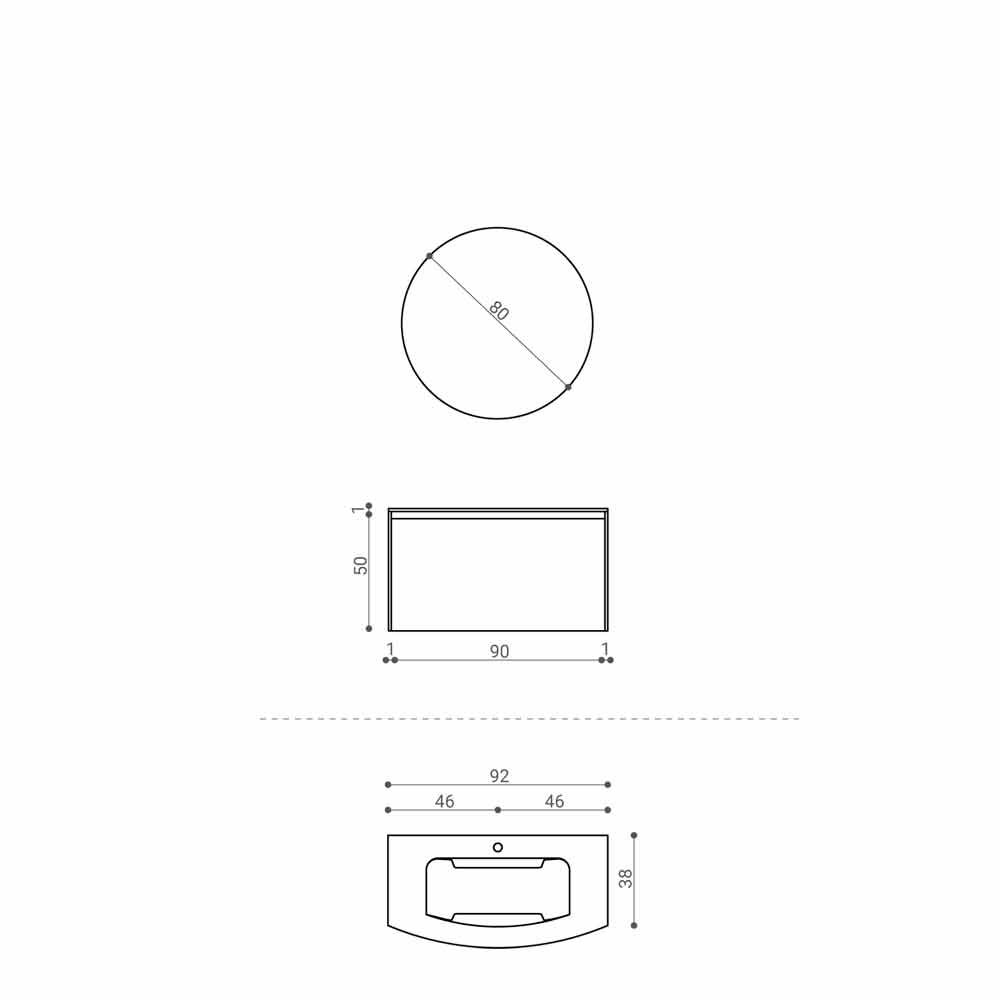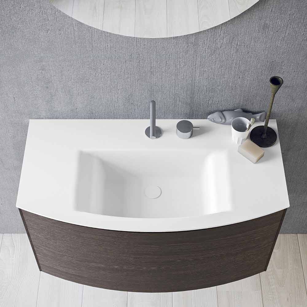 Compoziție modernă de baie, suspendată și design minimal cu chiuvetă integrată, fabricată în Italia.