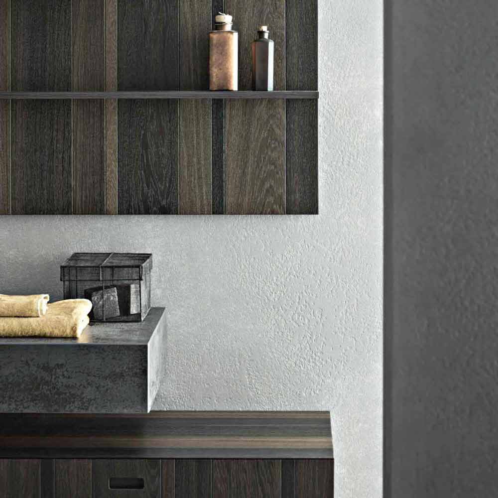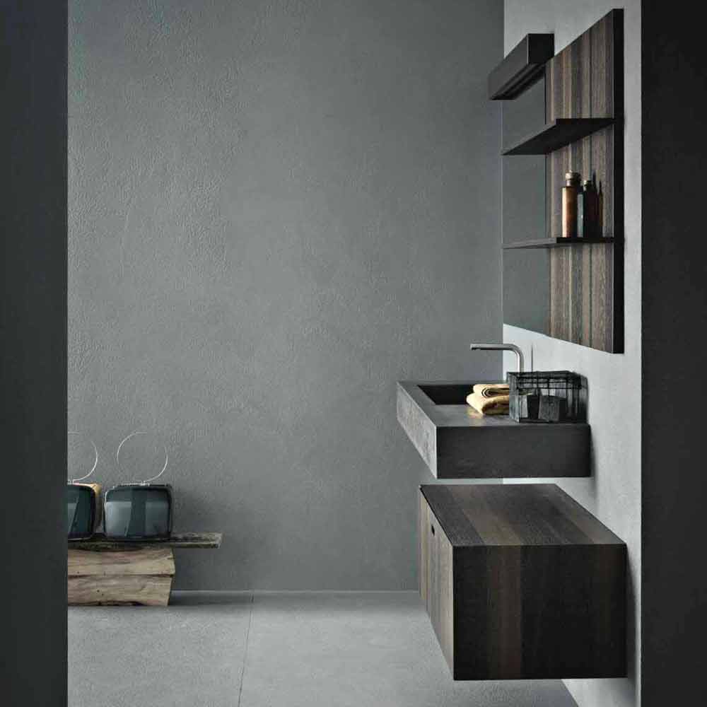 O compoziție inspirată din natură, eco-sensibilă , concepută cu respect pentru mediu: rășina de ciment, precum și lemnul și piatra, sunt de fapt lucrate cu un proces manual care îi îmbunătățește imperfecțiunile, făcând din fiecare baie o piesă unică .