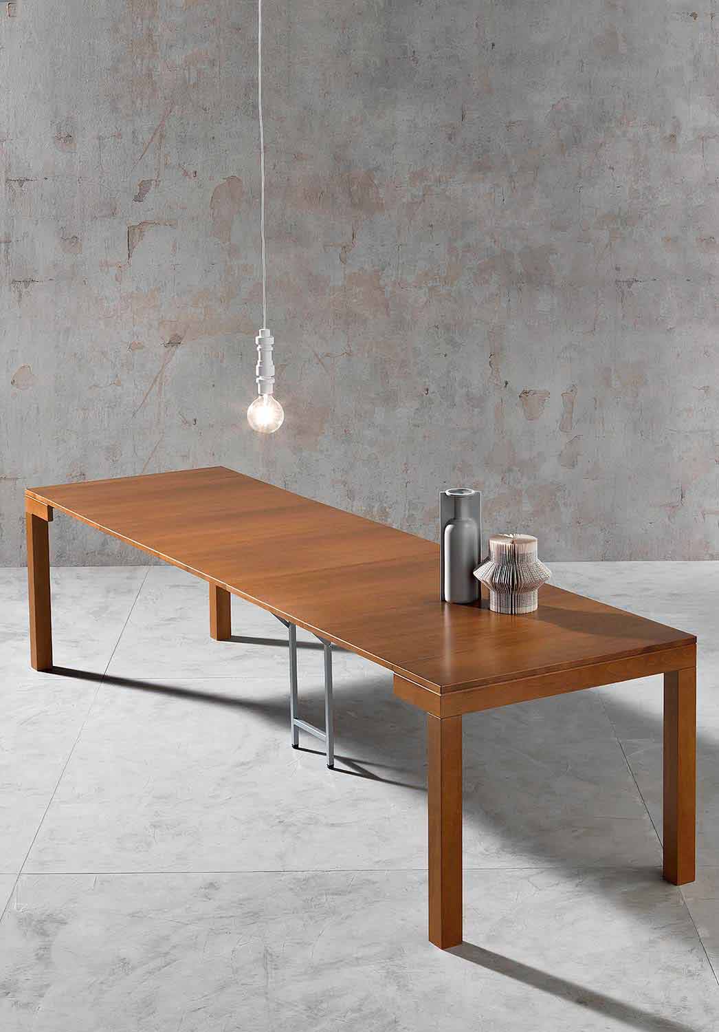 lemn furniruit din nuc tanganika (grosime 22 mm). Partea superioară devine extensibilă printr-o deschidere centrală cu ghidaje din aluminiu și suport central; în mijloc pot fi introduse 5 rafturi de 53 cm fiecare conținute într-un