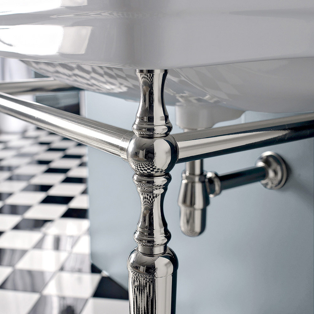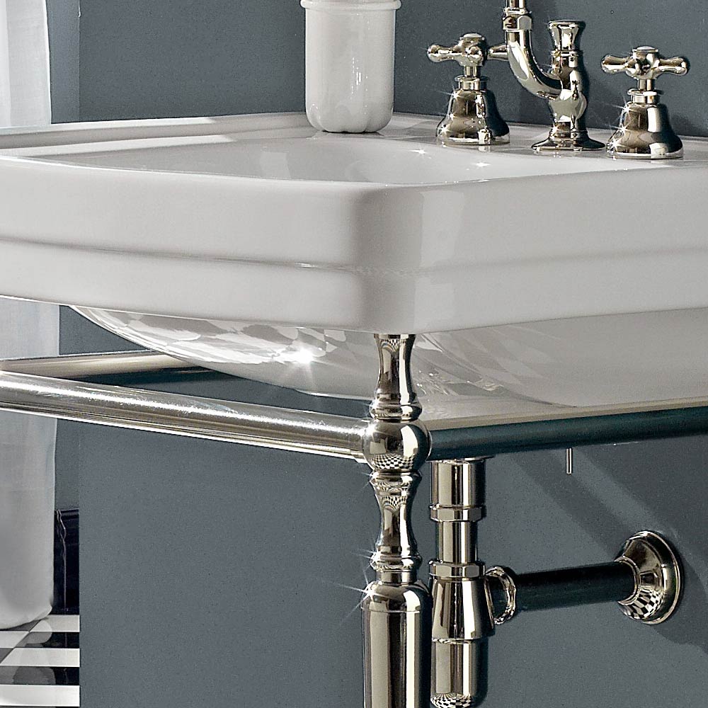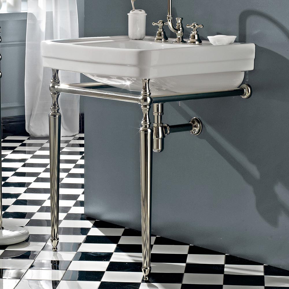 Stilul acestei chiuvete de consolă poate fi definit ca fiind neoclasic: designul și liniile retro aduc în minte
