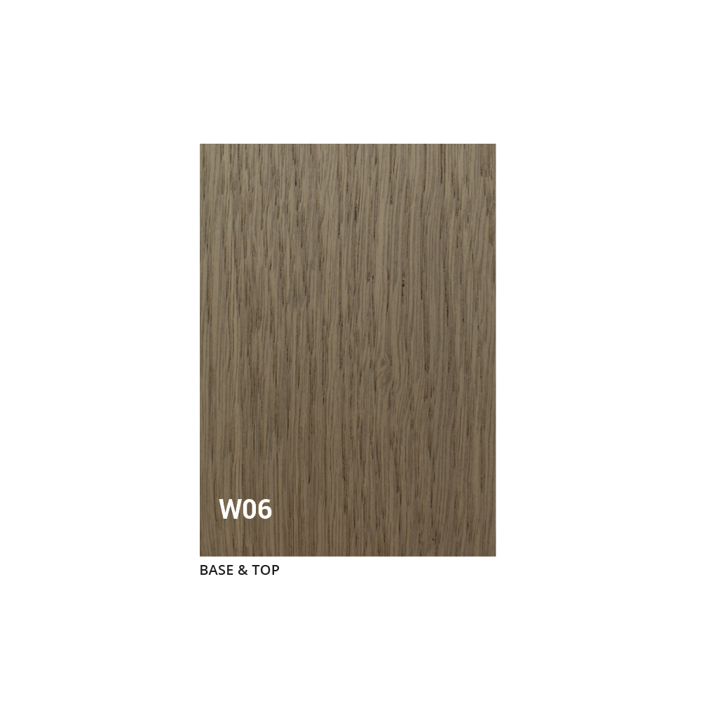 lemn furniruit și picioare de sprijin pivotante centrale în aceeași culoare.