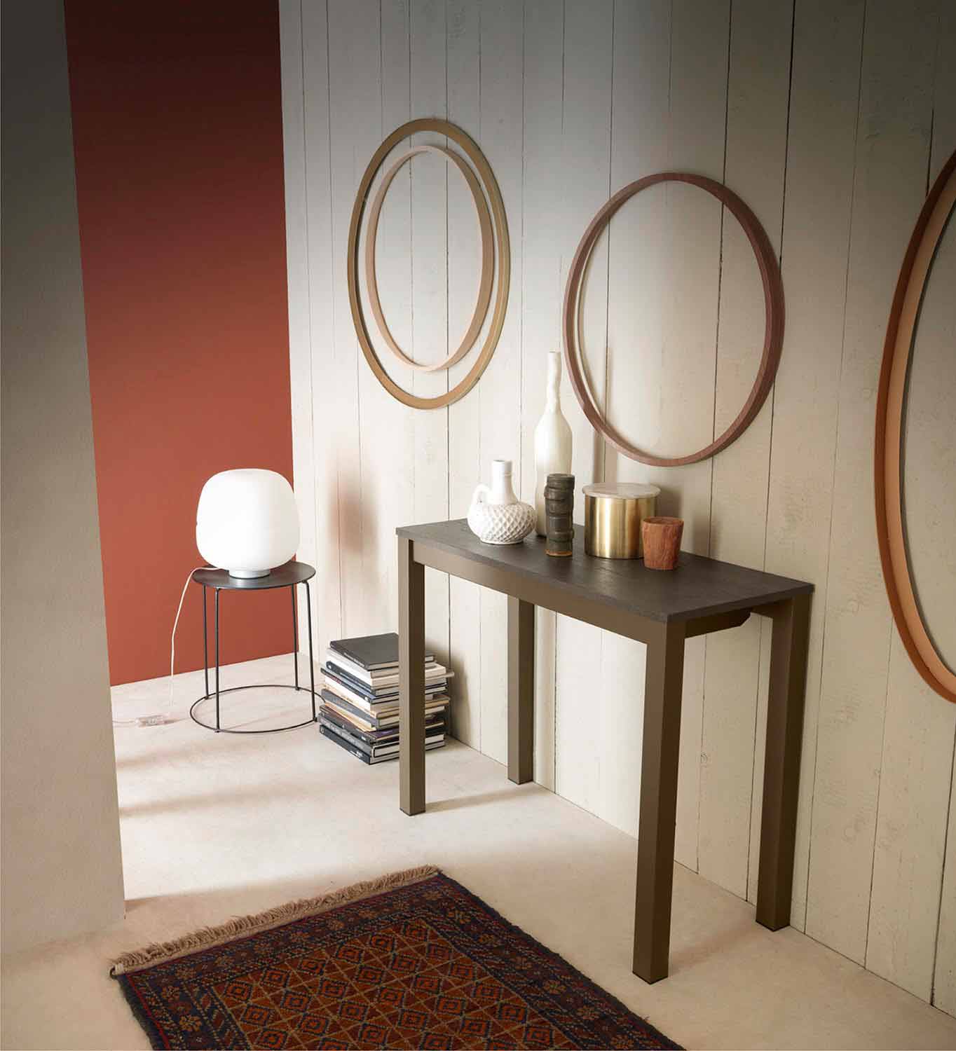 Consola extensibila care poate fi transformata intr-o masa de sufragerie din metal si stejar furniruit Made in Italy.