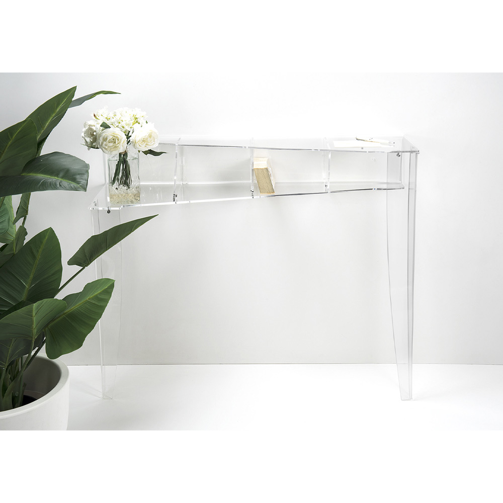 Fabricat din plexiglas 100% PMMA din polimer virgin transparent, este cea mai discretă și în același timp funcțională piesă de mobilier care va îmbogăți intrarea sau zona de locuit.