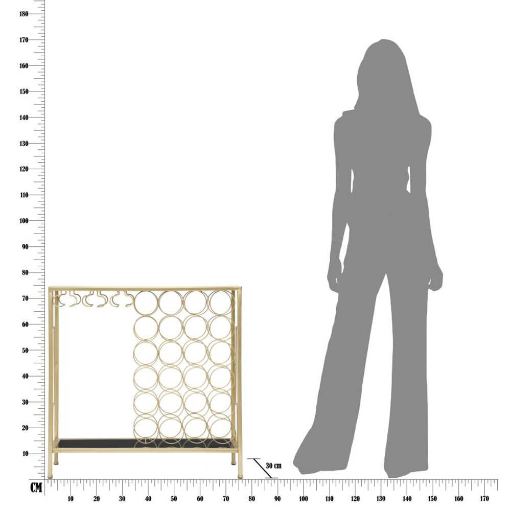 Consolă cu suport pentru sticle cu structură din fier finisat auriu și blat negru real . O piesă de mobilier modernă și elegantă care combină funcționalitatea suportului pentru sticle și cea a consolei de intrare, făcând acest produs unic și exclusivist . Combinația minunată dintre finisajul auriu al structurii și sticla neagră conferă consolei o notă rafinată și elegantă, făcându-l o soluție ideală pentru mediile de casă contemporane.