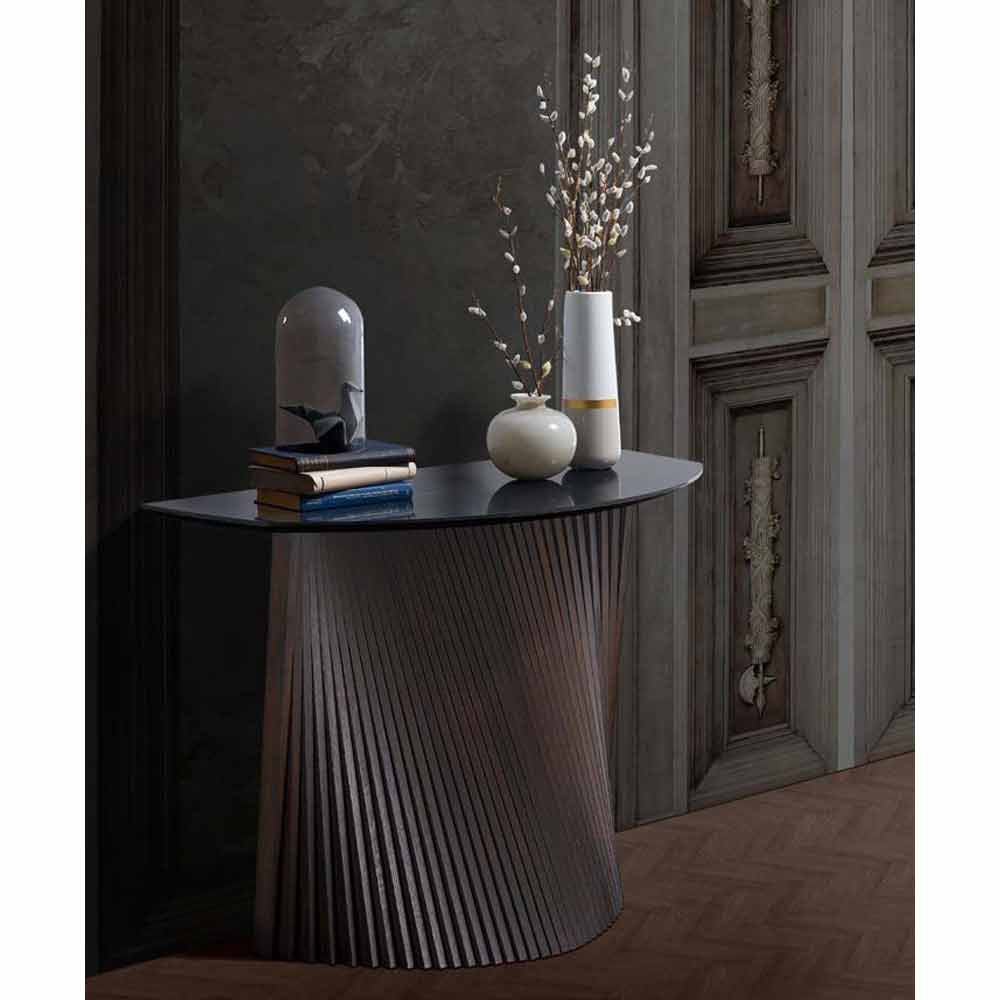 Scenic și impunător, această consolă demonstrează un caracter puternic și o personalitate bine definită, elemente fundamentale care îi permit să cucerească centrul atenției datorită, de asemenea, combinației minunate dintre măreția lemnului și eleganța și rafinamentul gresiei și finisajelor sale .