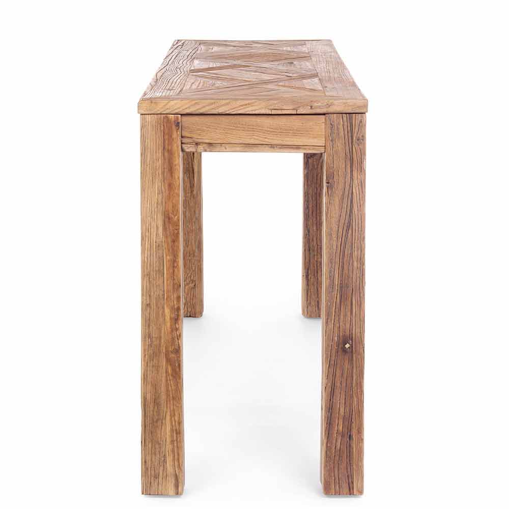 Această consolă de design este realizată în întregime din lemn de ulm reciclat, cu partea superioară decorată cu un finisaj de parchet îmbătrânit și un finisaj pe bază de nitroceluloză.