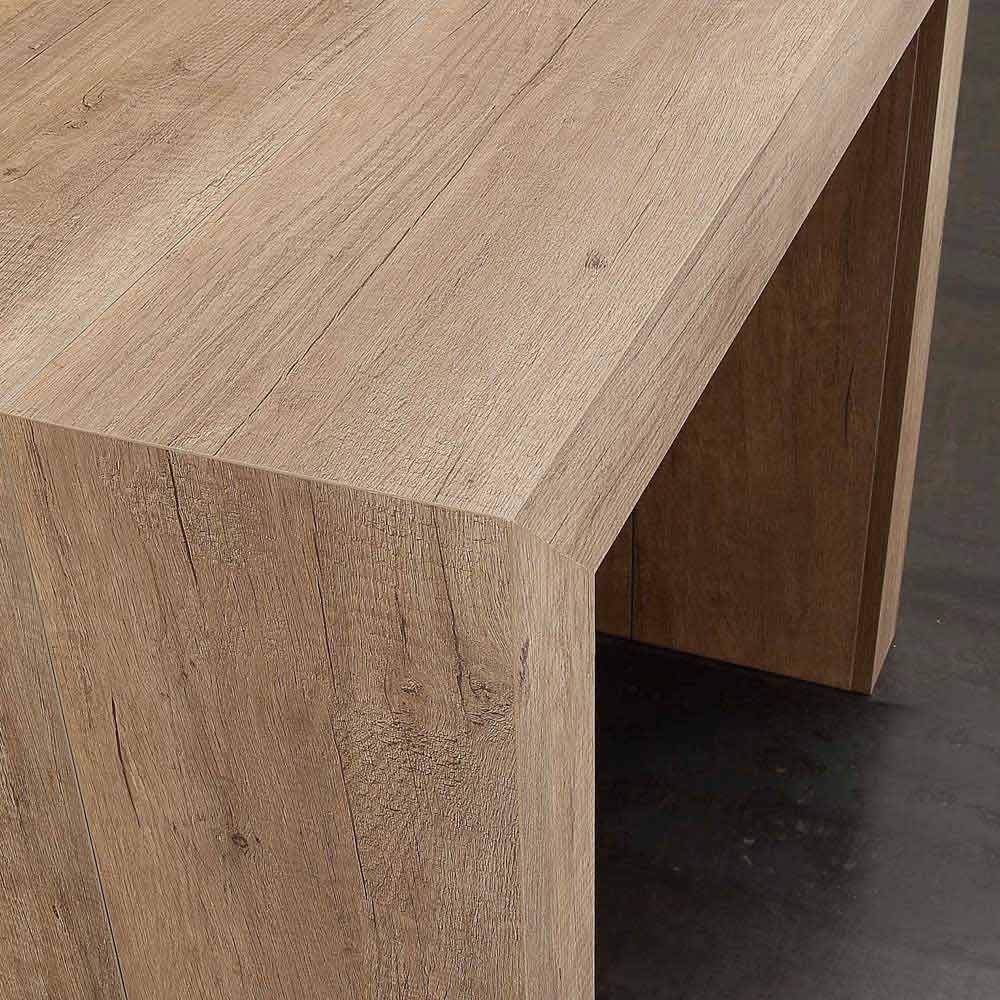Această consolă este confecționată din melamină pliabilă , disponibilă în diferite finisaje: alb cu pori deschisi, stejar stricat sau în varianta de stejar înnodat. Alegeți finisajul pe care îl doriți cel mai mult!