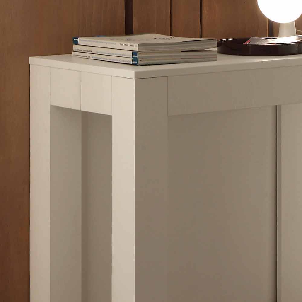 Această consolă este realizată din melamină pliabilă, cu un finisaj alb cu pori deschisi.