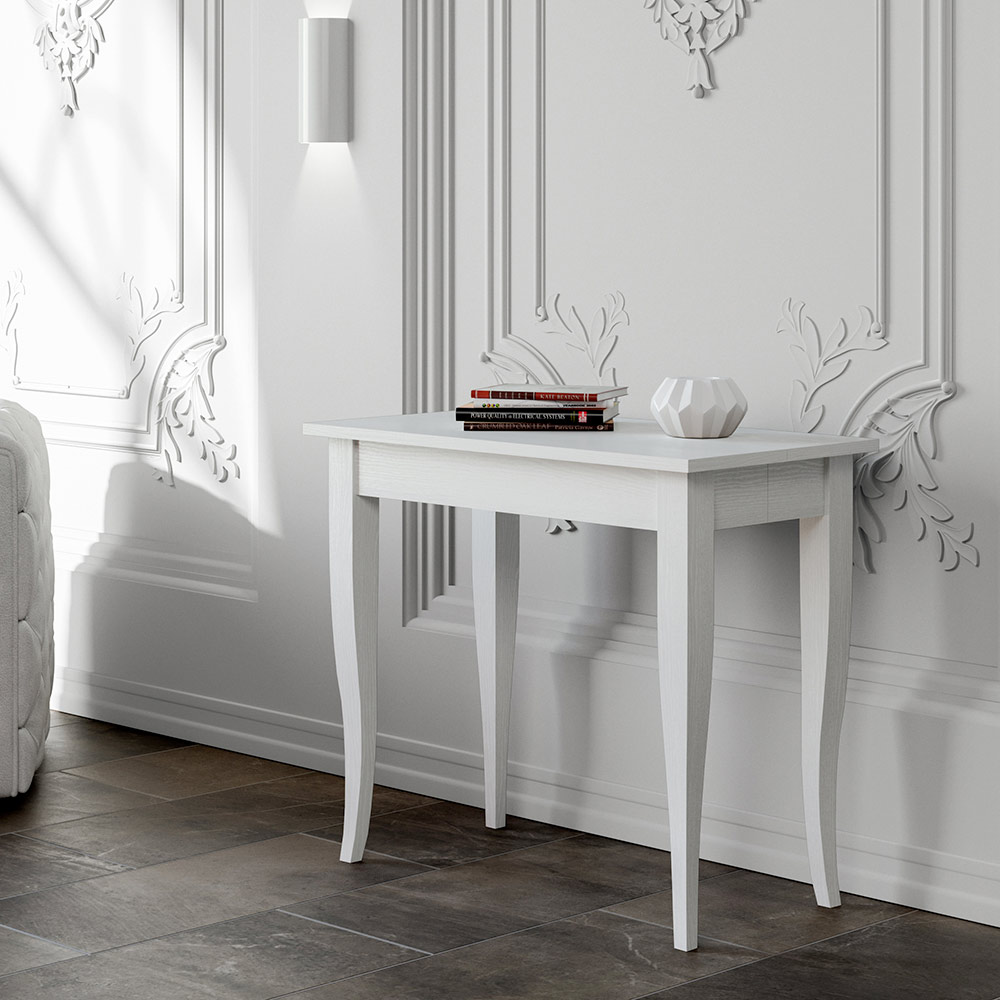 Această masă consolă extensibilă è o celebrare a purității și grației. Cu blatul său superb din lemn, evocă un sentiment de prospețime și spațialitate; în timp ce picioarele curbate adaugă o notă de eleganță fluidă la designul general.