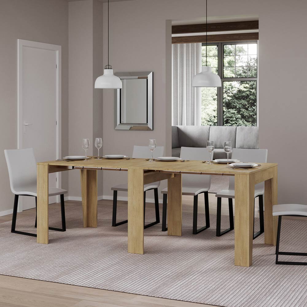 Această masă consolă extensibilă è întruchiparea designului funcțional și minimalist. Forma sa elegantă și liniile curate o transformă într-o piesă versatilă de mobilier, ideală pentru orice spațiu, de la intrare până la camera de zi, oferind o imagine de spațiu și ordine. Masa consolă se extinde cu ușurință, transformându-se dintr-o piesă discretă de mobilier într-o masă practică, perfectă pentru a găzdui prietenii și familia la ocazii speciale. Această versatilitate o face o alegere ideală pentru cei care locuiesc în spații mici, dar nu doresc să sacrifice funcționalitatea și stilul.