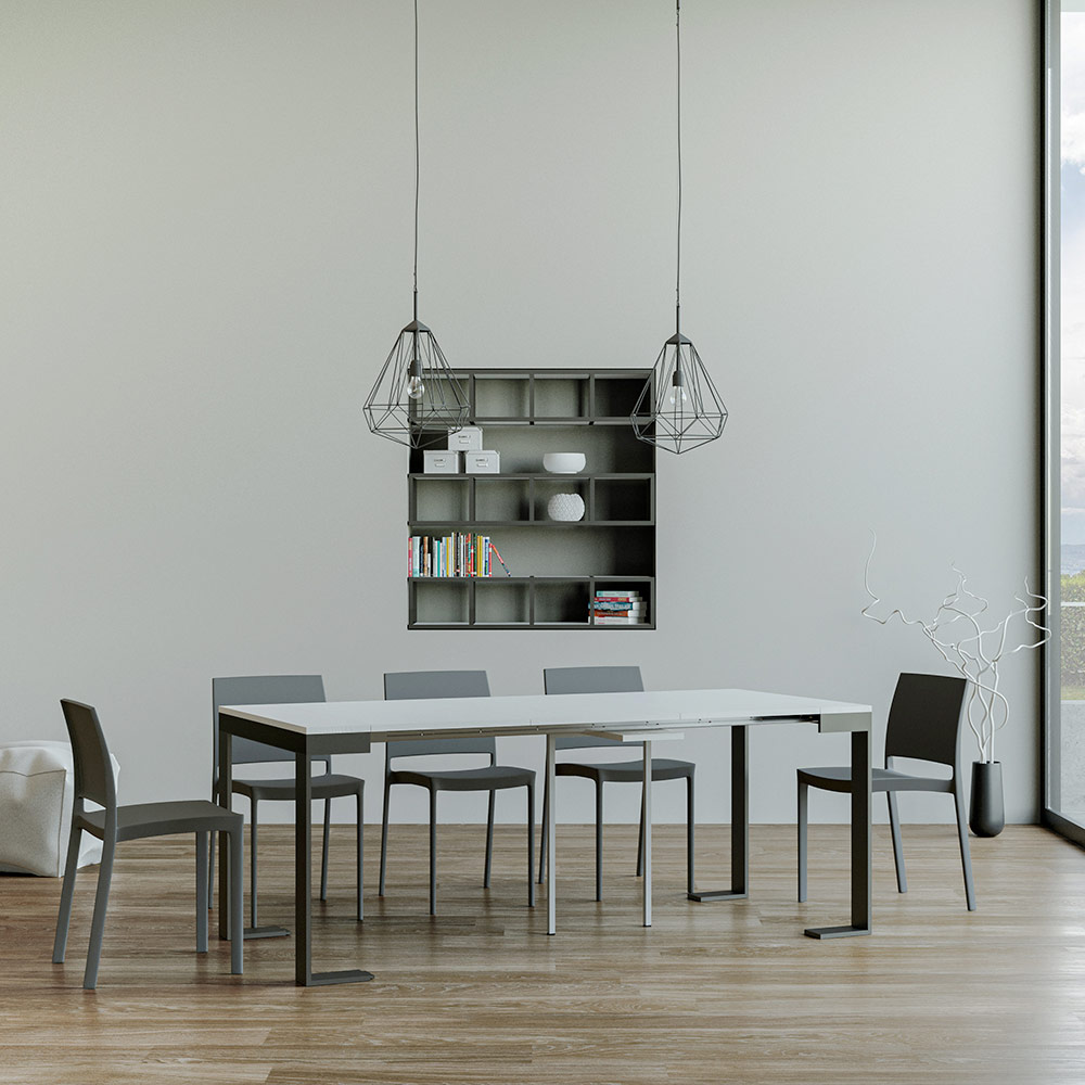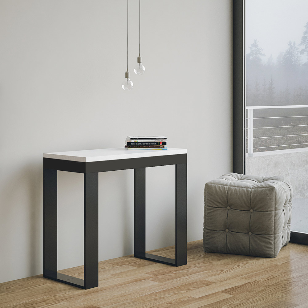 Această masă consolă extensibilă è un exemplar de design contemporan gândit să combine eleganța și practicitatea.