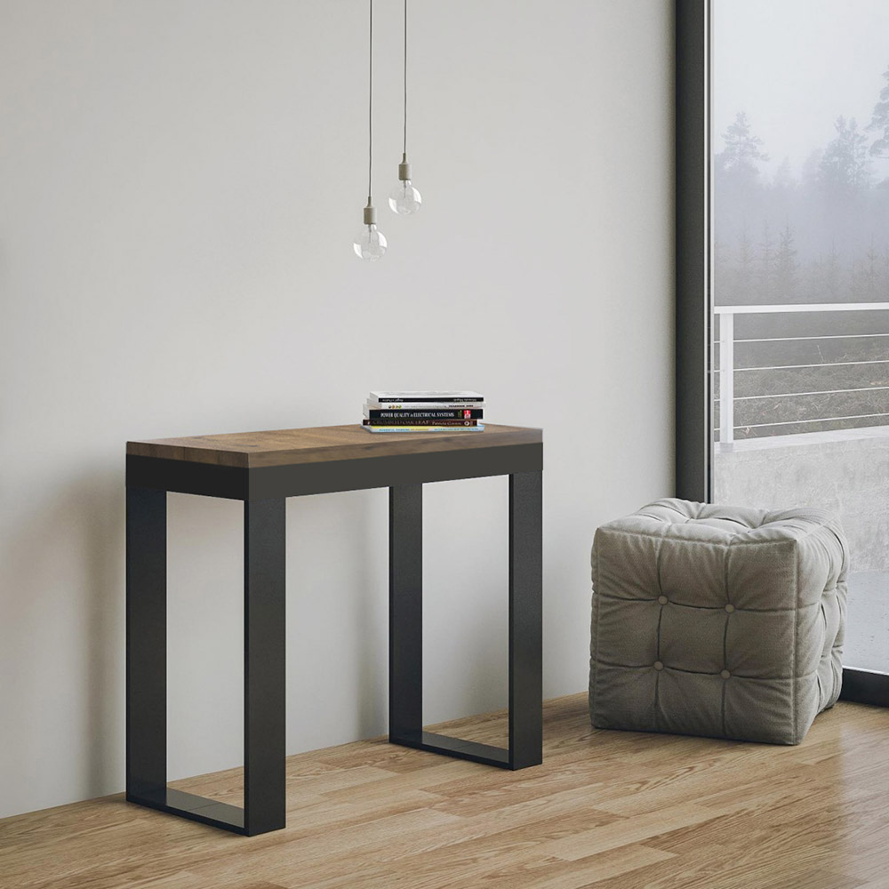 Mesă consolă extensibilă realizată din lemn furniruit și fier, Made in Italy