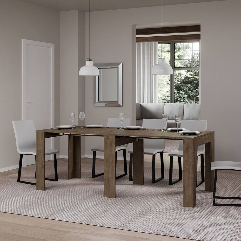 Această masă consolă extensibilă è întruchiparea designului funcțional și minimalist. Forma sa elegantă și liniile curate o transformă într-o piesă versatilă de mobilier, ideală pentru orice spațiu, de la intrare la living, oferind o imagine de spațiu și ordine. Masa consolă se extinde cu ușurință, transformându-se dintr-o piesă discretă de mobilier într-o masă practică, perfectă pentru a găzdui prietenii și familia la ocazii speciale. Această versatilitate o face o alegere ideală pentru cei care locuiesc în spații mici, dar nu doresc să sacrifice funcționalitatea și stilul.