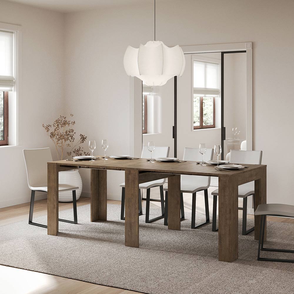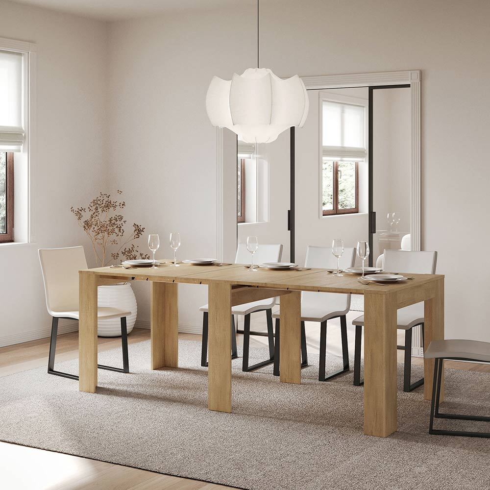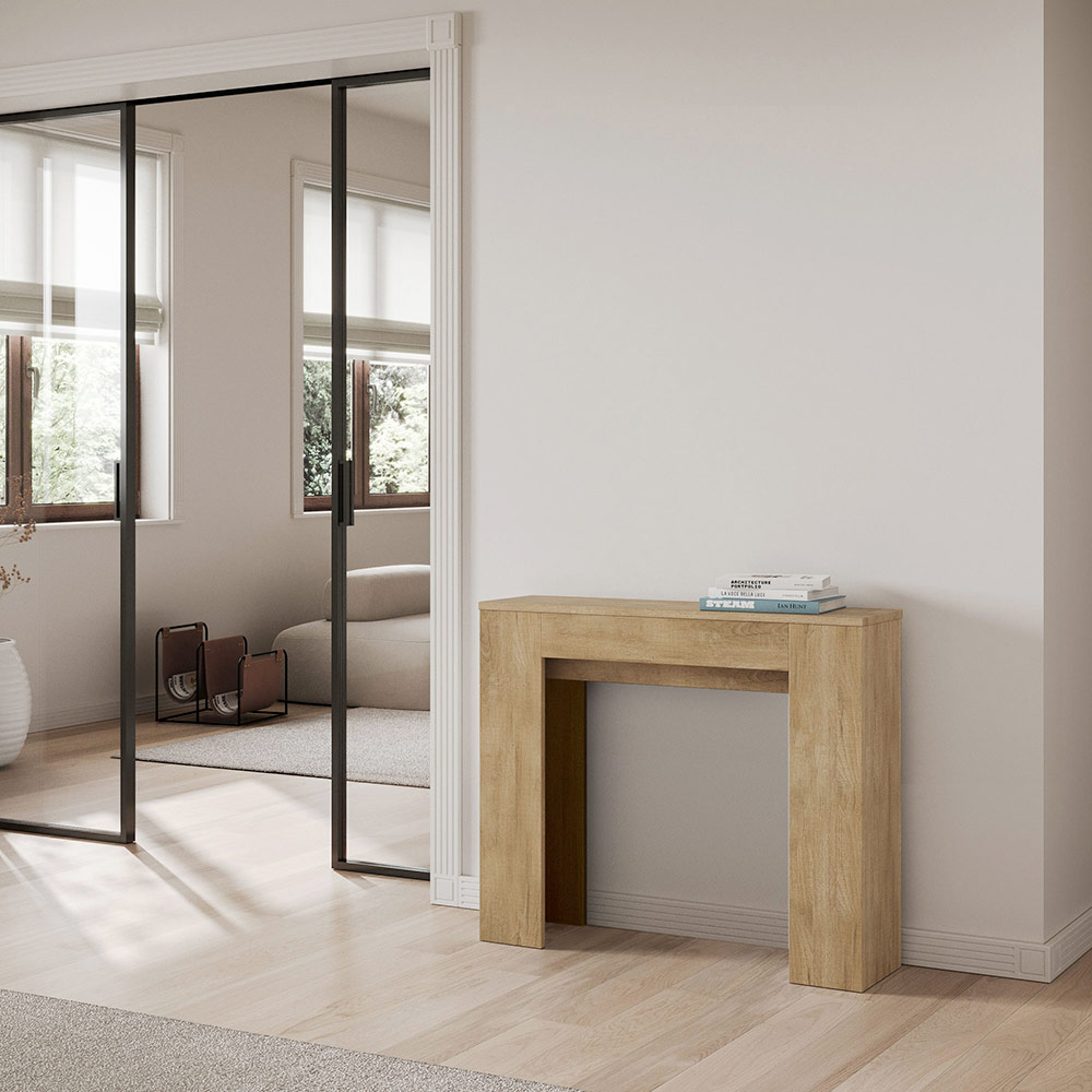 Această masă consolă extensibilă è întruchiparea designului funcțional și minimalist. Forma sa elegantă și liniile curate o transformă într-o piesă versatilă de mobilier, ideală pentru orice spațiu, de la intrare la living, oferind o imagine de spațiu și ordine. Masa consolă se extinde cu ușurință, transformându-se dintr-o piesă discretă de mobilier într-o masă practică, perfectă pentru a găzdui prietenii și familia la ocazii speciale. Această versatilitate o face o alegere ideală pentru cei care locuiesc în spații mici, dar nu doresc să sacrifice funcționalitatea și stilul.