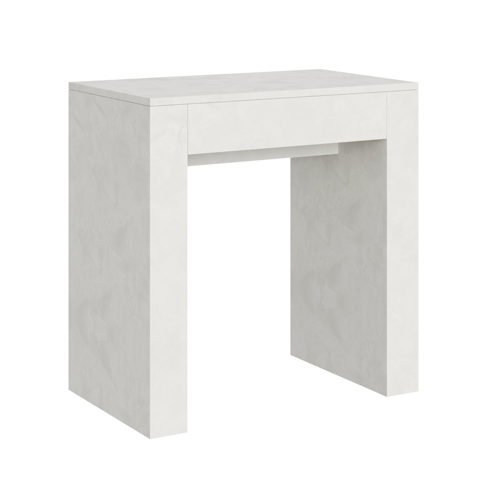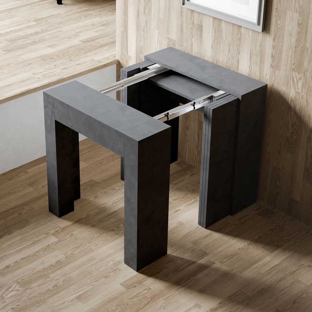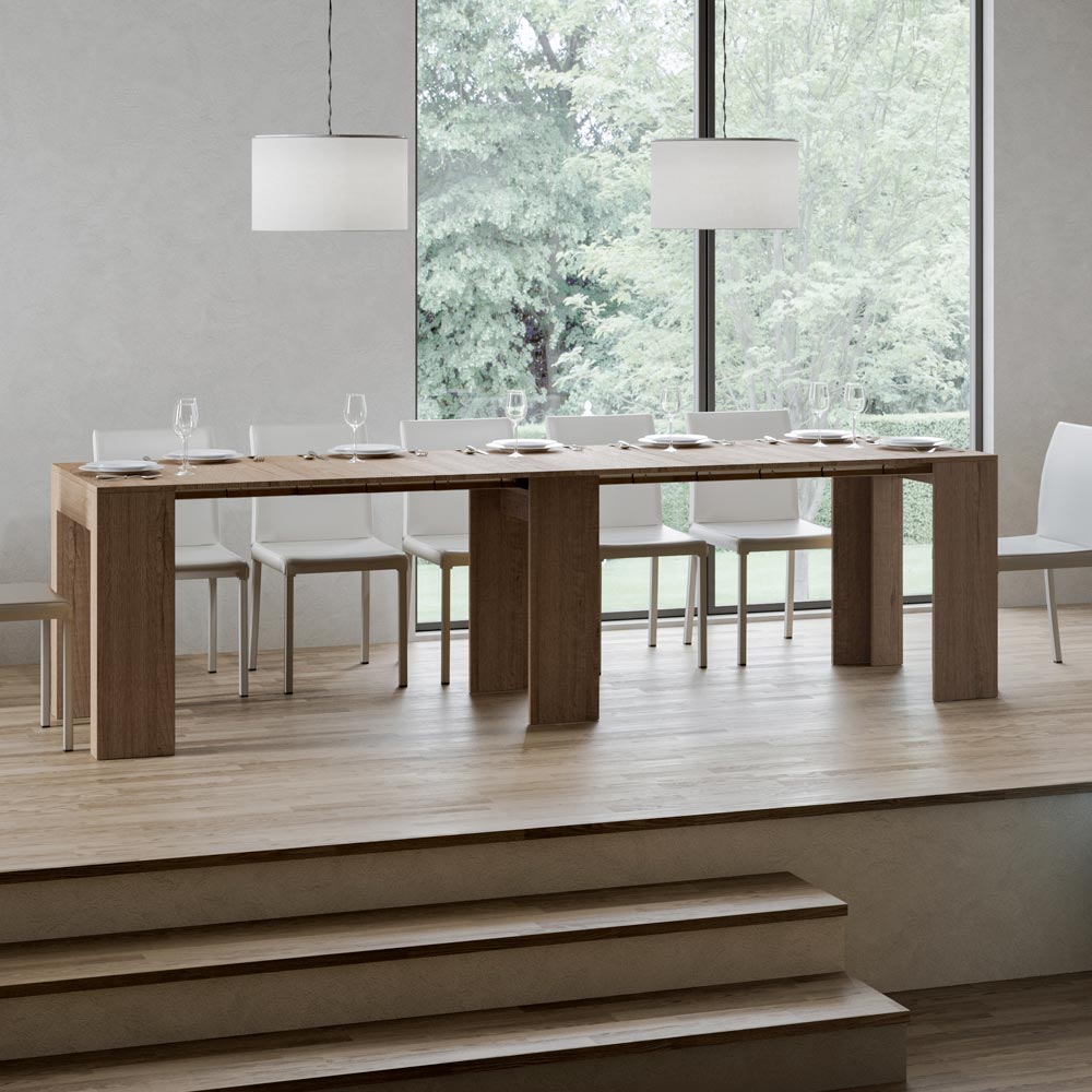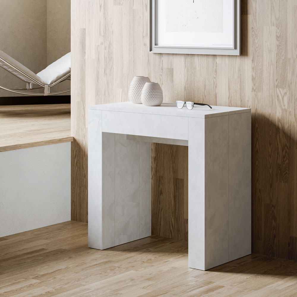 Această consolă extensibilă este o capodoperă de design contemporan și funcționalitate intuitivă. Blatul și părțile laterale din lemn furniruit oferă o senzație luminoasă și deschisă, ideală pentru cei care doresc să creeze un spațiu aerat și modern în același timp. Estetica sa esențială și curată îl face potrivit pentru orice mediu, perfect pentru a se potrivi într-un design minimalist sau ca un contrast într-unul mai colorat și vivid.