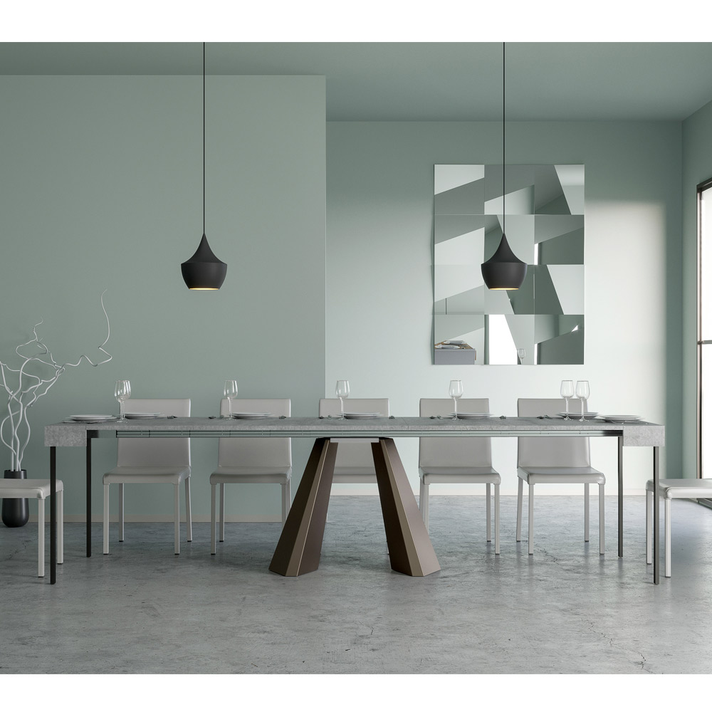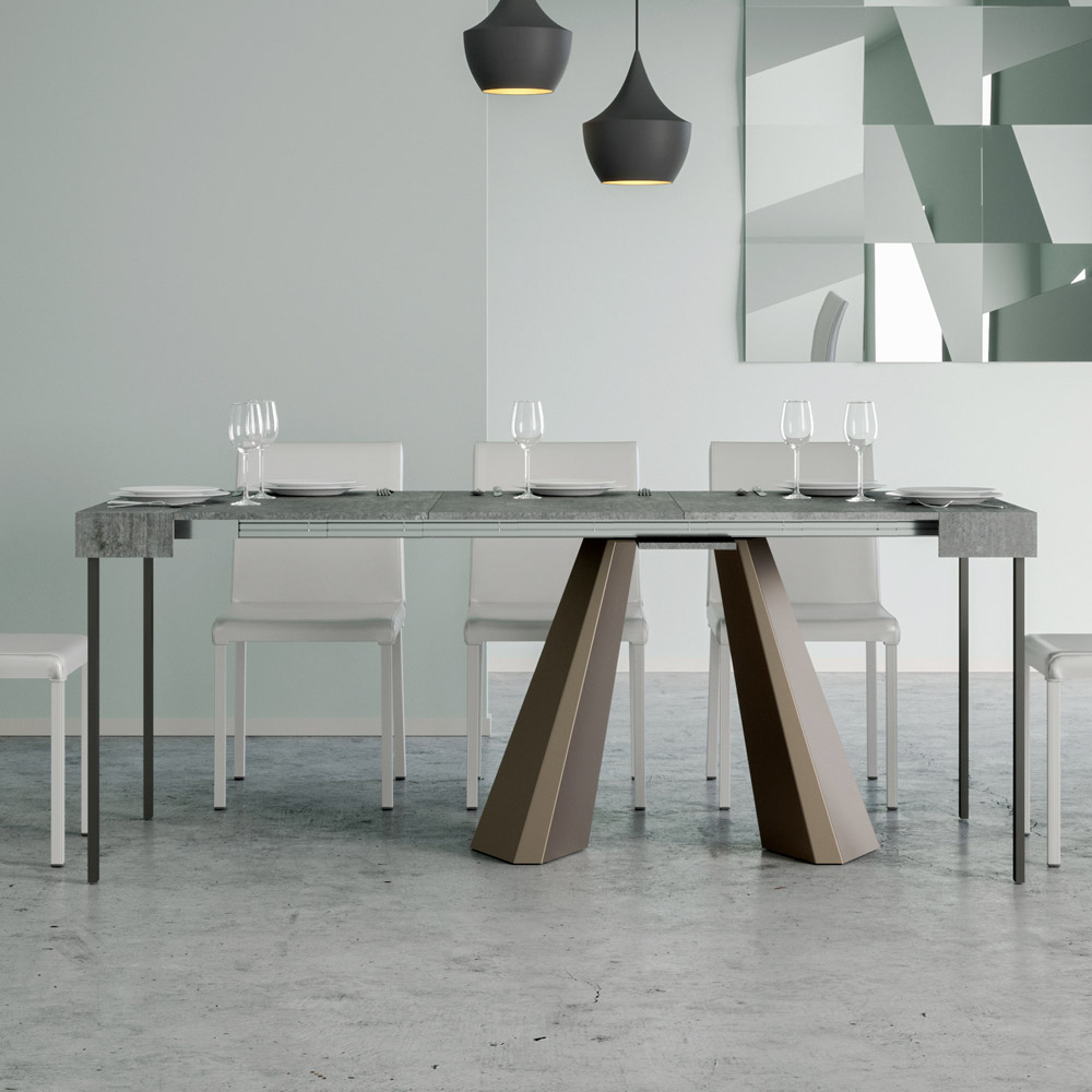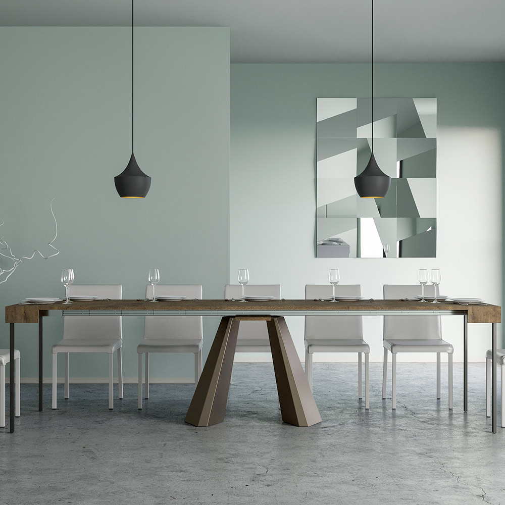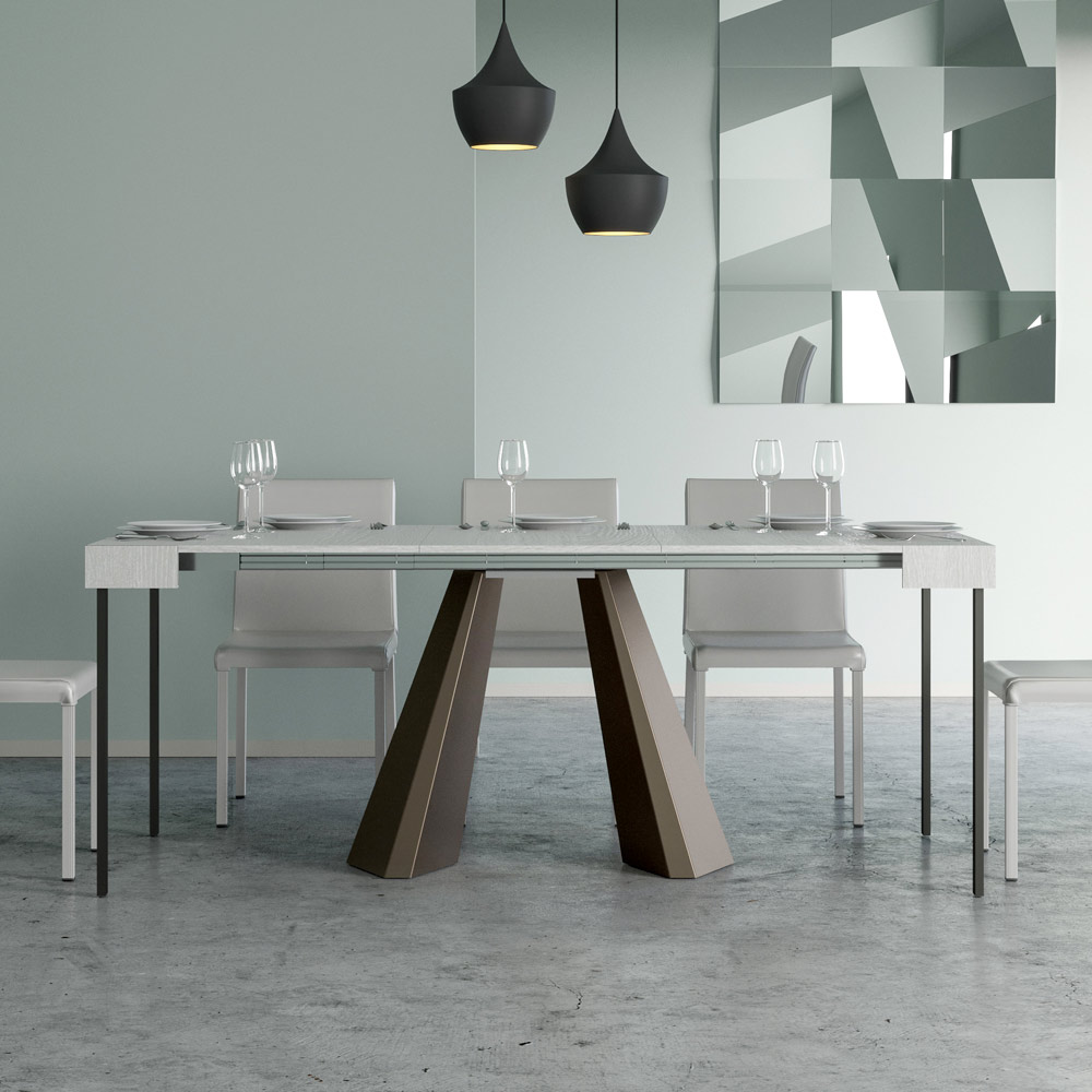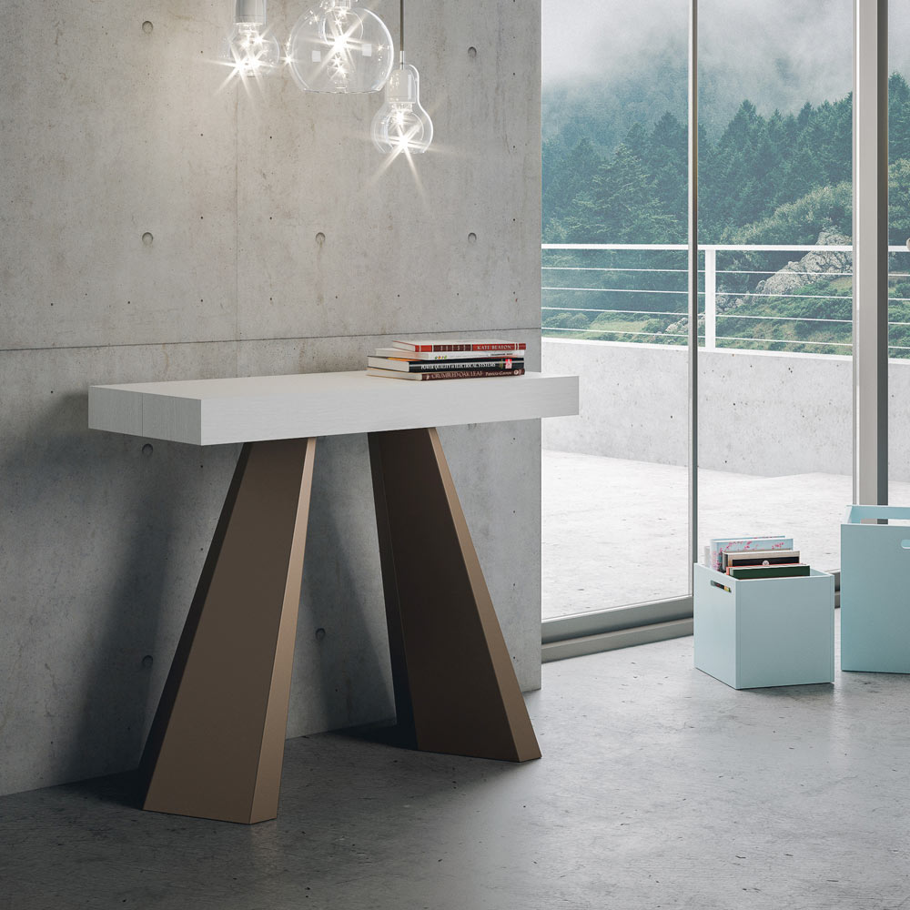 Unicitatea acestei mese consolă constă în picioarele sale, care amintesc de formele geometrice ale arhitecturii moderne, oferind un aspect scultural și avangardist. Datorită sistemului său extensibil, această piesă transformă orice spațiu de la simplu la extraordinar, extinzându-se pentru a găzdui momentele sociale sau pentru a oferi acea suprafață suplimentară de care aveți nevoie.