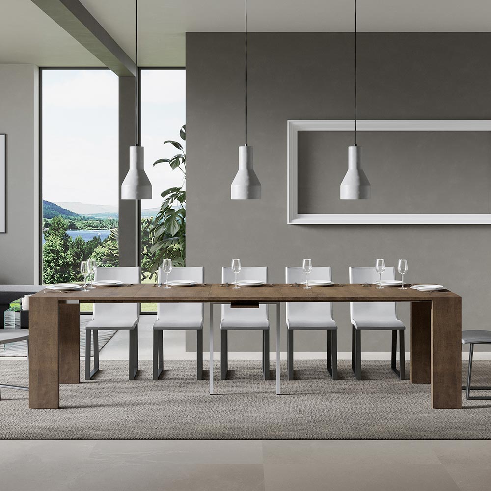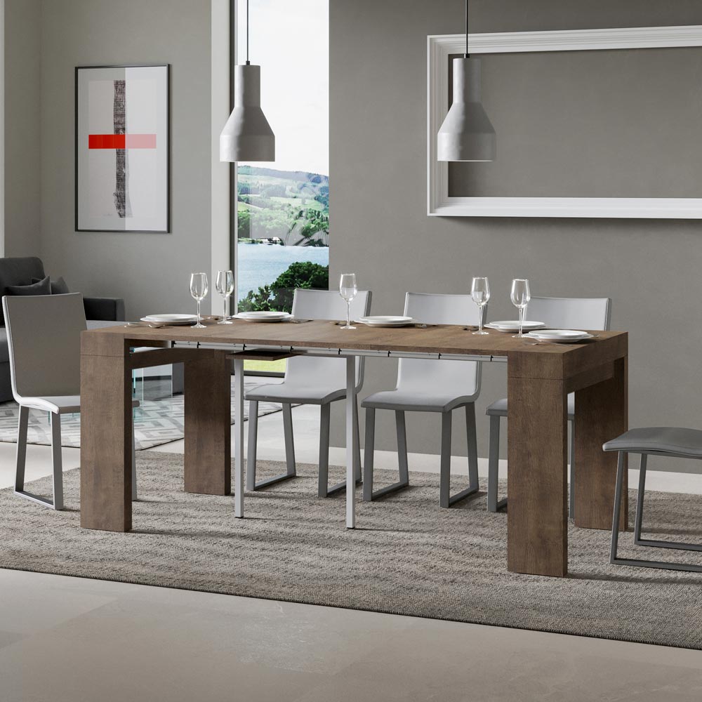 Mecanismul extensibil è un exemplu de inteligență spațială: masa consolă se poate transforma cu ușurință într-o masă mai mare, fiind o soluție versatilă pentru apartamente mici sau încăperi care necesită mobilier multifuncțional. è este ideală pentru cei care apreciază frumusețea funcțională și designul inteligent care economisesc spațiu fără a sacrifica stilul.