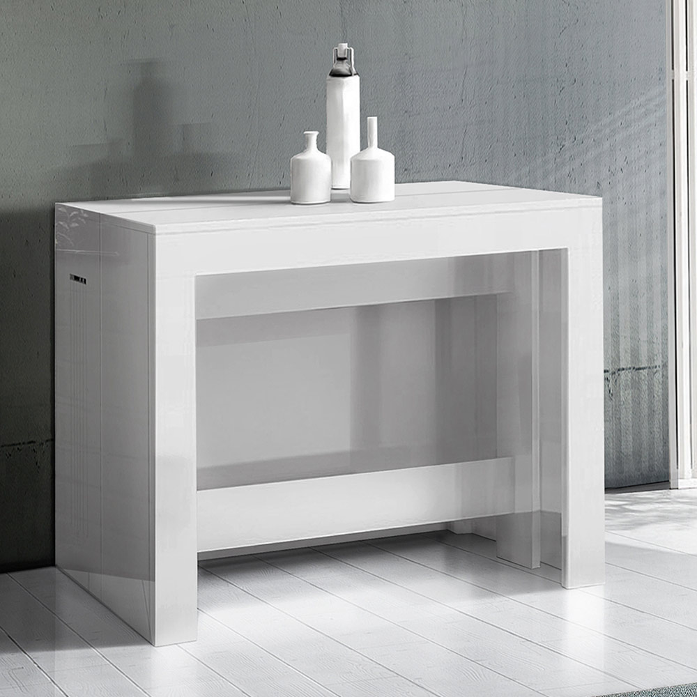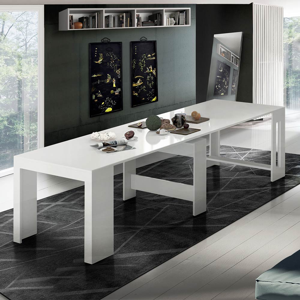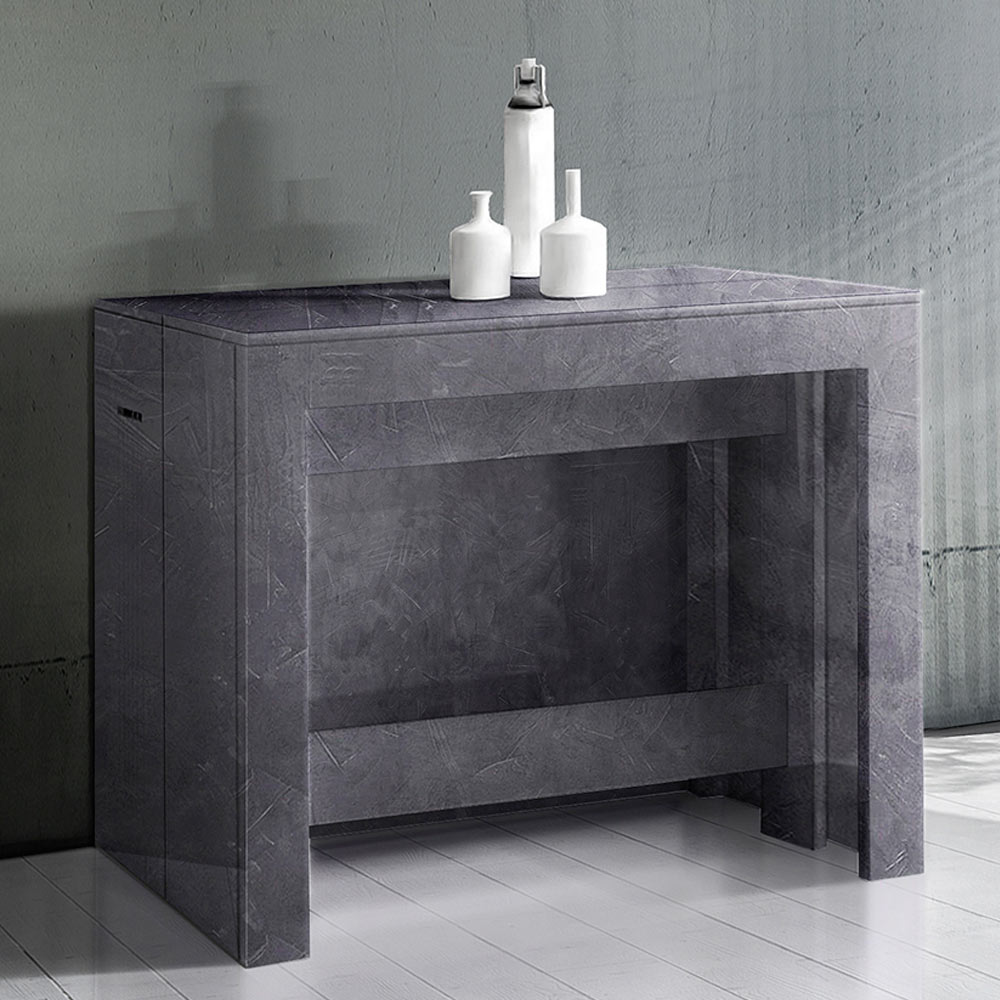 Consola extensibilă poate fi poziționată atât la intrare, cât și în sufragerie și se caracterizează prin designul său extrem de practic și minimal.