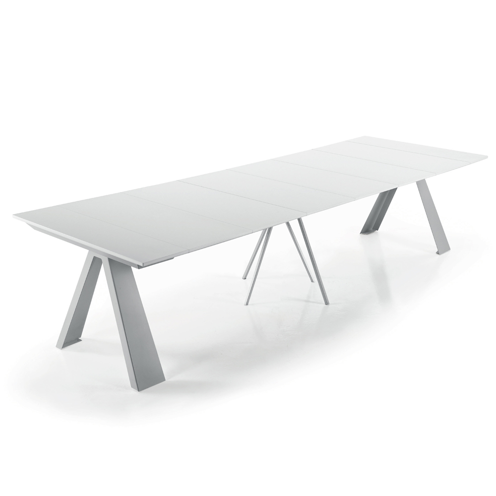Consola de design extensibila pana la 14 locuri din lemn stratificat si otel fabricat in Italia.