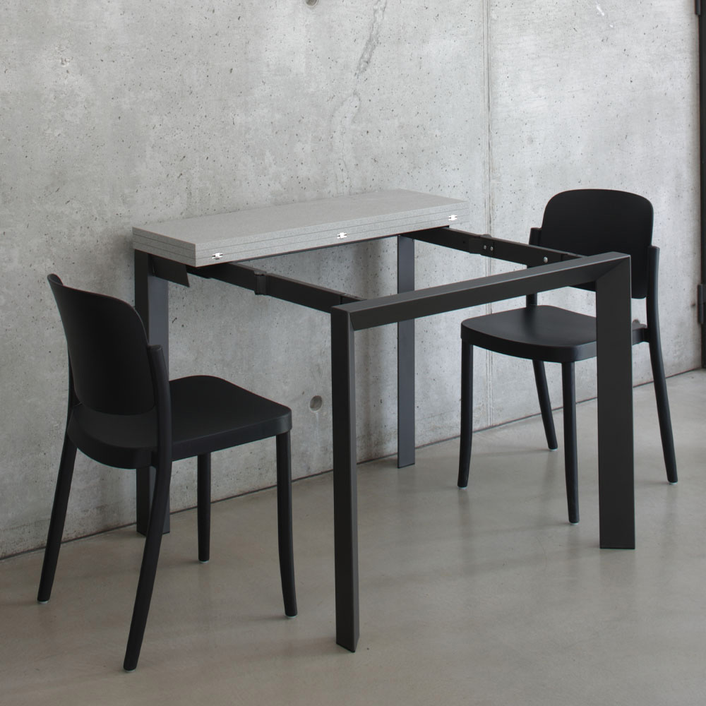 Adevărata magie se dezvăluie în potențialul său de transformare: se extinde cu ușurință într-o masă de dimensiuni generoase , gata să găzduiască cine, sesiuni de lucru sau momente de convivialitate cu prietenii și familia. Este ideala pentru cei care cauta solutii care economisesc spatiu fara a renunta la functionalitatea unei mese mari.