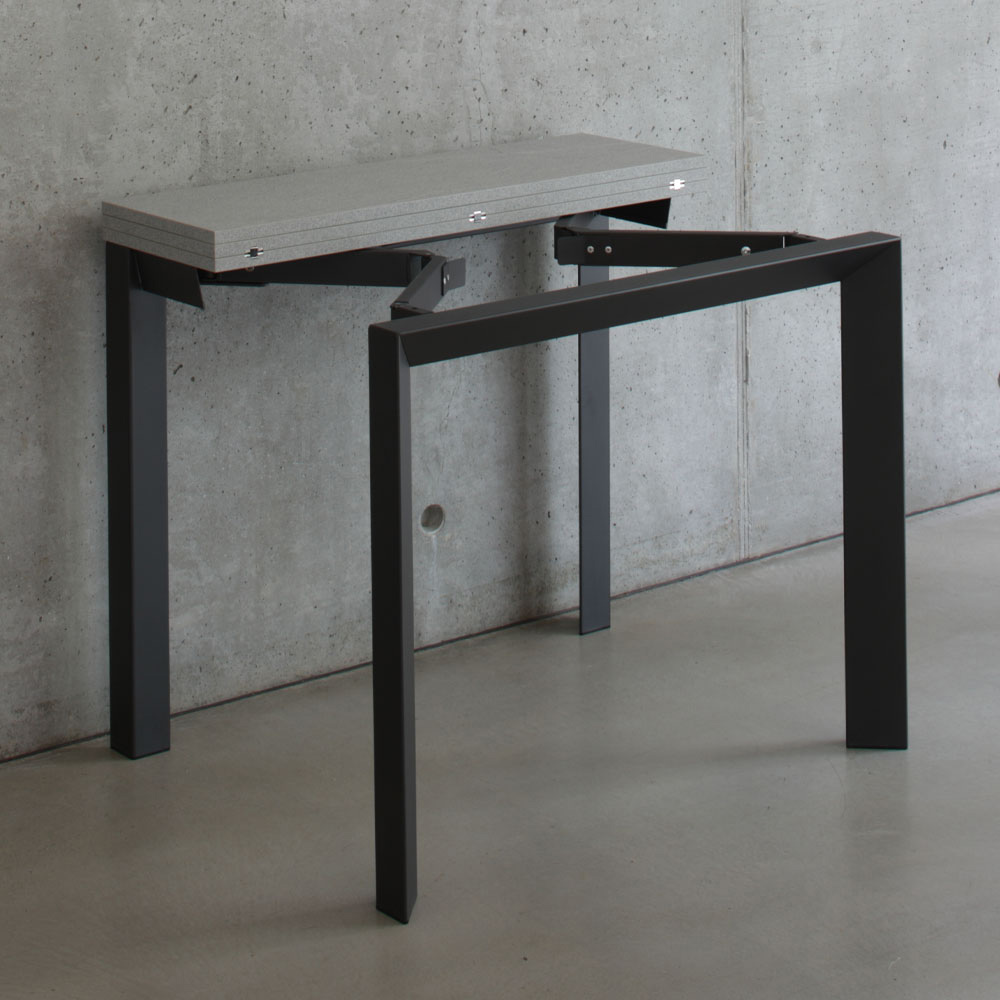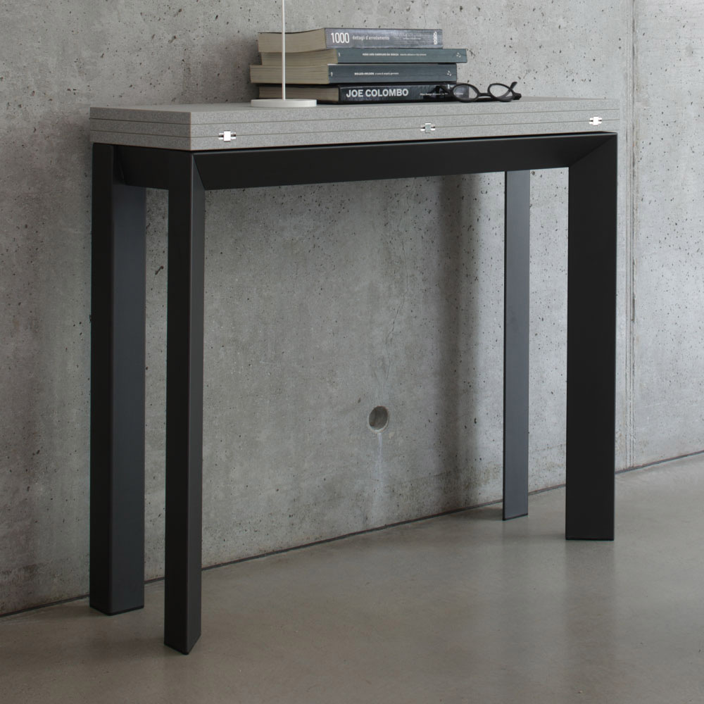 Are un design curat și liniar , capabil să se integreze discret în orice mediu. Când este închisă, este o consolă subțire și rafinată, perfectă pentru intrare, unde poate găzdui obiecte esențiale precum chei și portofele sau poate acționa ca afișaj pentru obiectele tale de artă preferate.