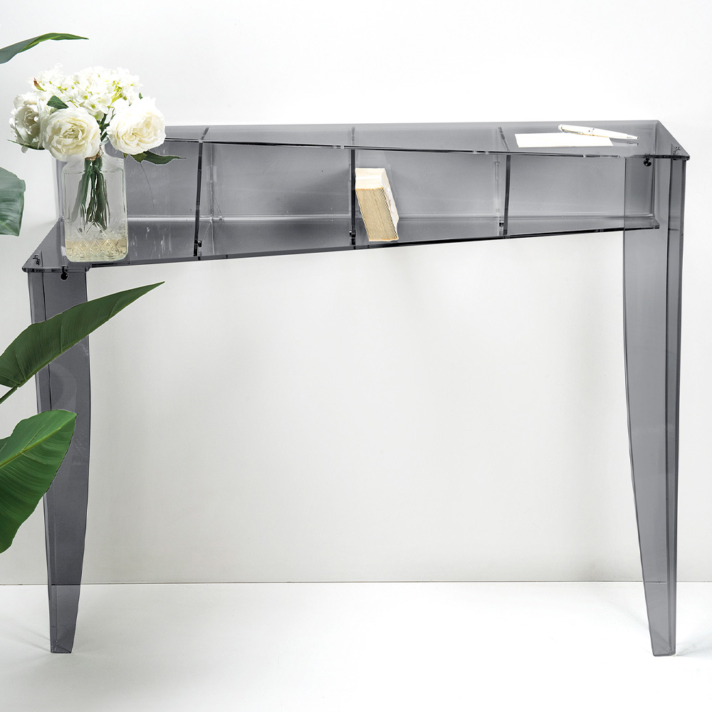 Cu estetica sa discretă, dar de neuitat, consola este suficient de versatilă pentru a fi remarcată fără a copleși celelalte elemente de mobilier. Suprafața sa netedă și transparentă este ideală pentru a afișa artă, rame foto sau pur și simplu pentru a vă păstra cheile și corespondența de zi cu zi organizate.
