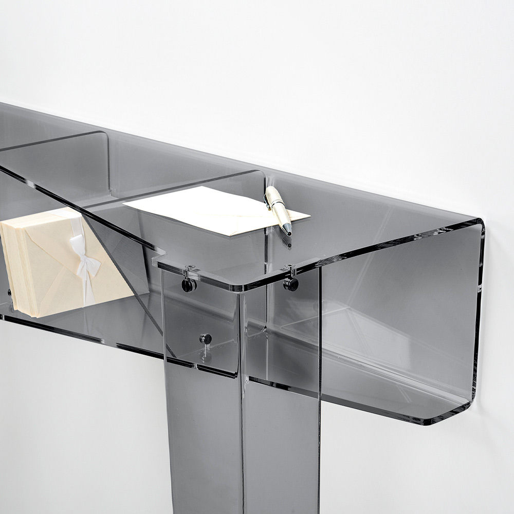 Realizată 100% din PMMA de înaltă calitate din polimer virgin , consola promite nu numai rezistență și durabilitate , ci și o strălucire și luminozitate care nu se estompează în timp. Ca o adevărată operă de artă, această consolă captează și reflectă lumina, creând o atmosferă plină de viață și dinamică în orice spațiu.