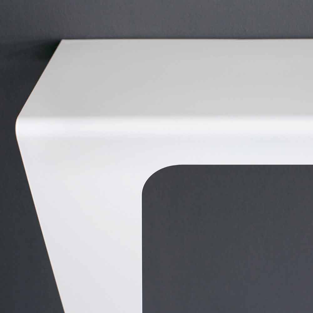 Liniile echilibrate, reduse, simplificate dau viață unei scenografii puternice în stil modern , care face consola de perete unică, adaptabilă oricărui mediu, fiind dotată cu o mare versatilitate.