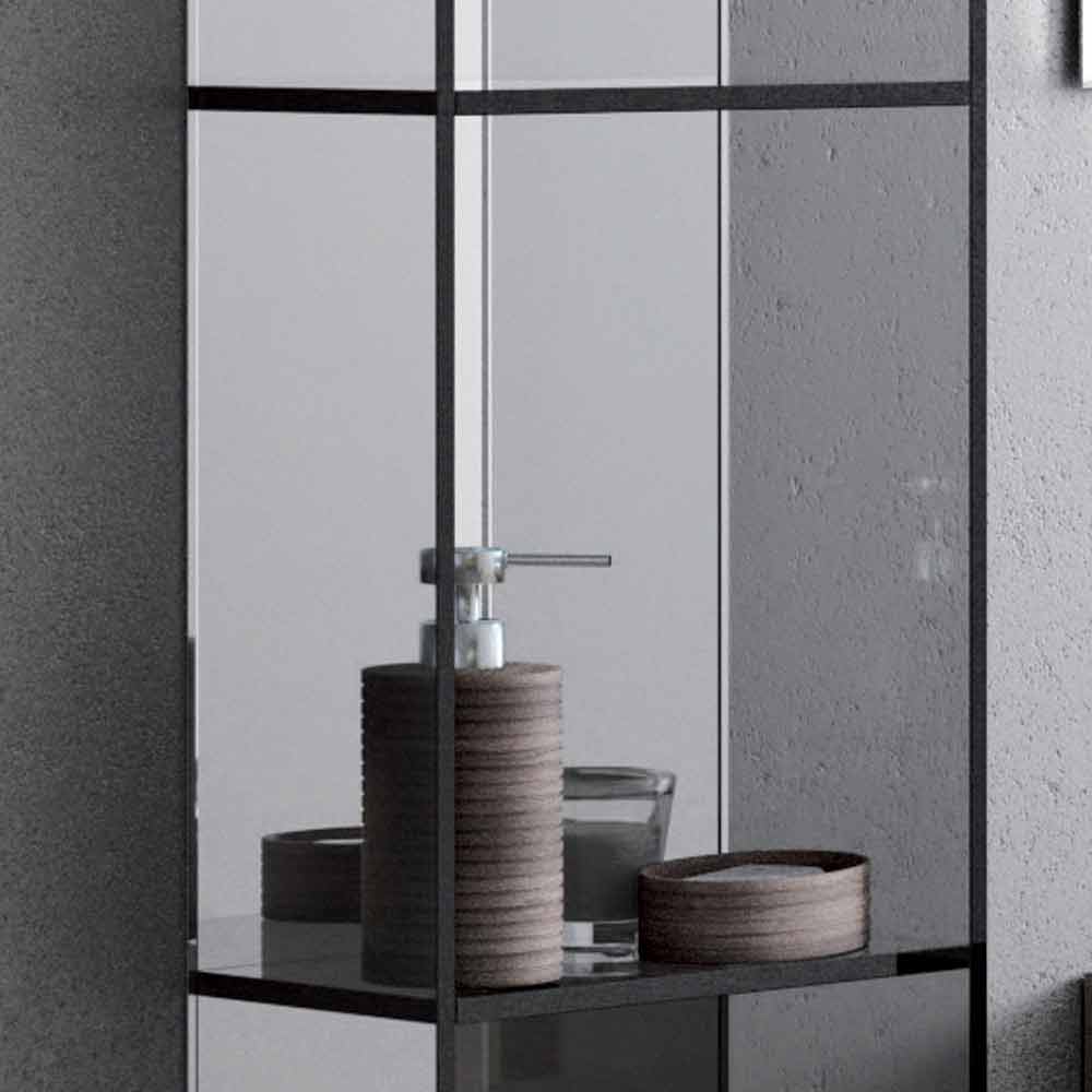 Cele pe zi elemente ale acestei linii sunt realizate în întregime din sticlă groasă de 8 mm. Panoul din spate este în oglindă. Placa subțire de sticlă prelucrată cu 45 ° joncțiuni este sudată printr-un proces termic care face extrem de elegant si cu un volum aproape imperceptibilă.