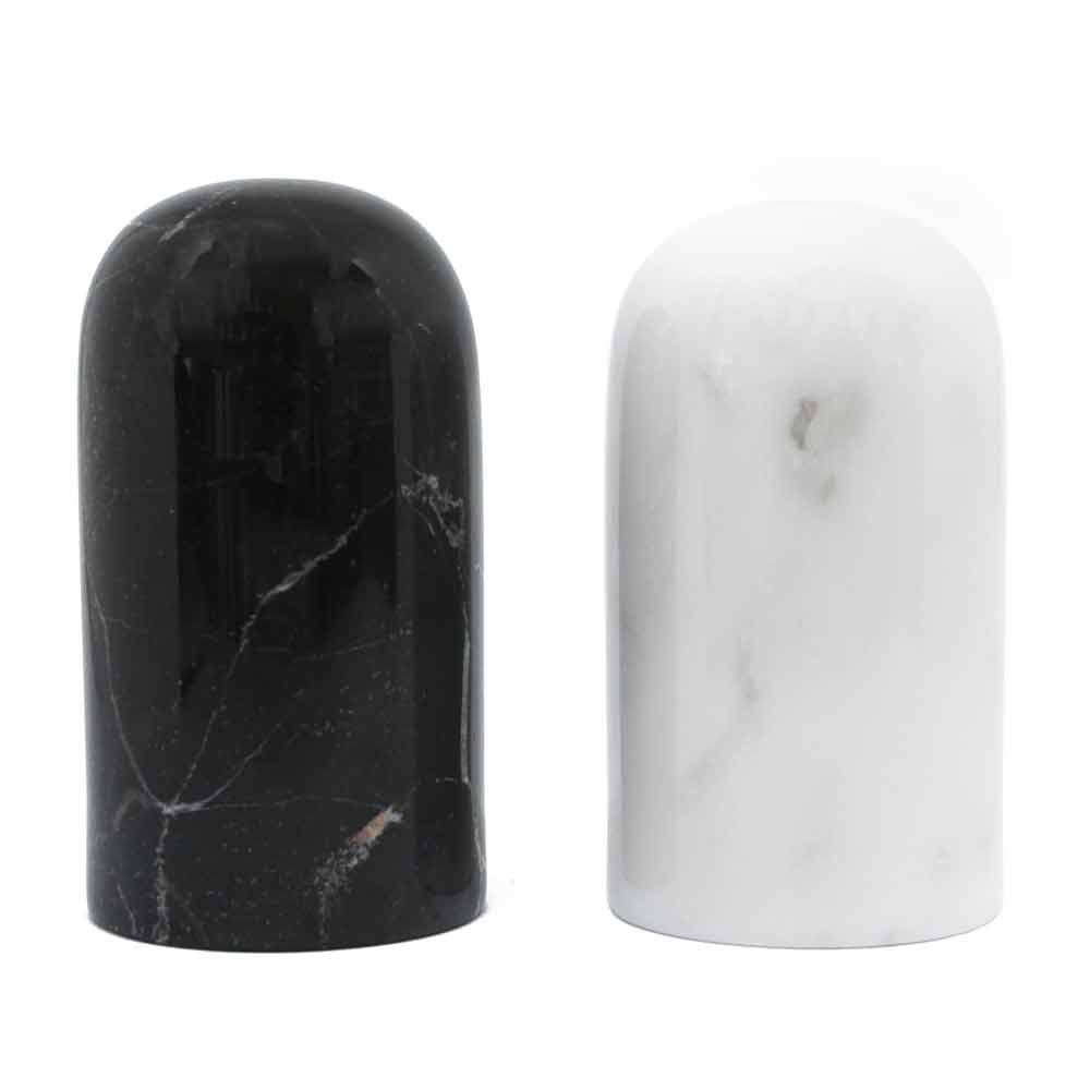 Aceste recipiente de bucătărie pentru sare și piper sunt caracterizate prin utilizarea de marmură Carrara alb și negru de marmură Marquinia și vor fi considerate piese unice ca fiecare bloc de marmură utilizate diferă de celelalte în vene și nuanțe.