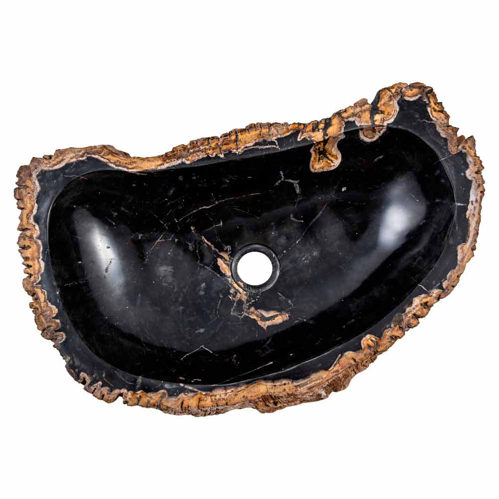 Chiuvetă de blat realizată manual din lemn fosil pietrificat, Negrar