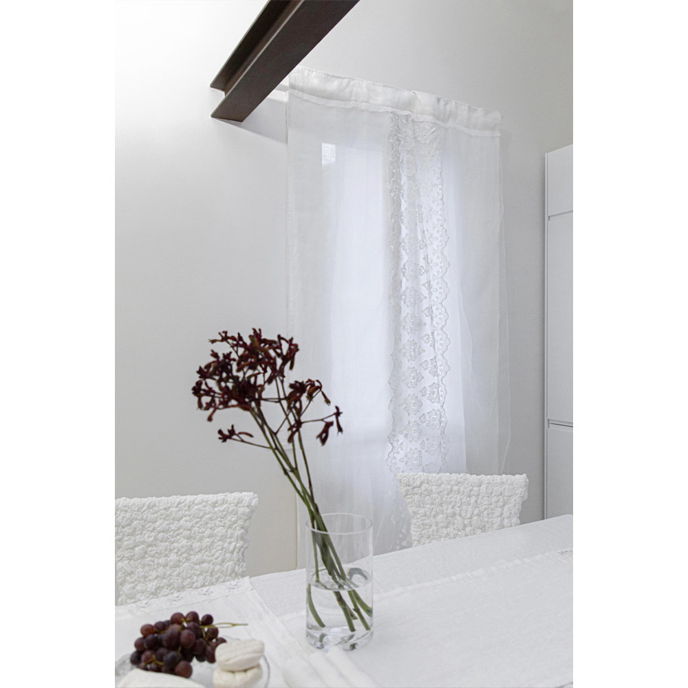 Perdea naturală de in și organza cu broderie verticală centrală și predispoziție pentru tijă, fabricată în Italia.