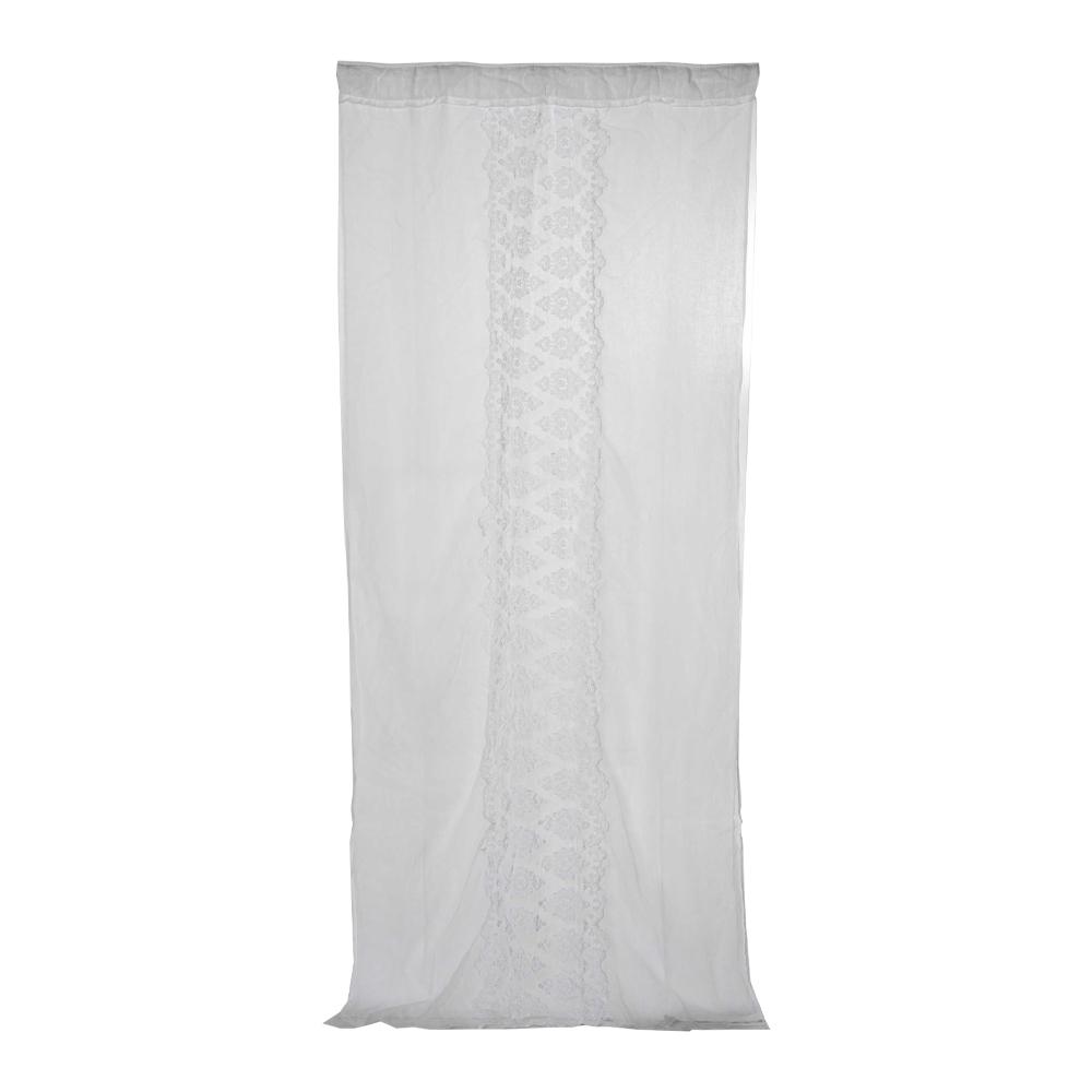 Valoarea tradiției se alătură stilului de viață modern , cu acest alb perdea lenjerie de lumină naturală cu organza si broderie gotic pe verticală în partea centrală și predispoziția pentru o trestie în partea superioară , cu organza decor.