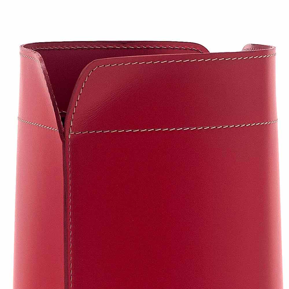 Este fabricat din piele regenerată prețioasă, disponibilă în diferite culori. Partea inferioară este din placaj și este acoperită și din piele.