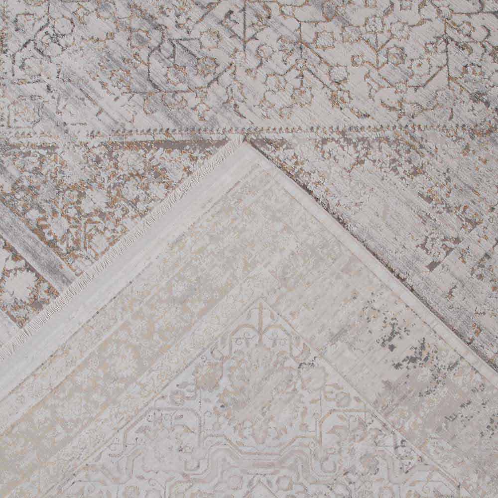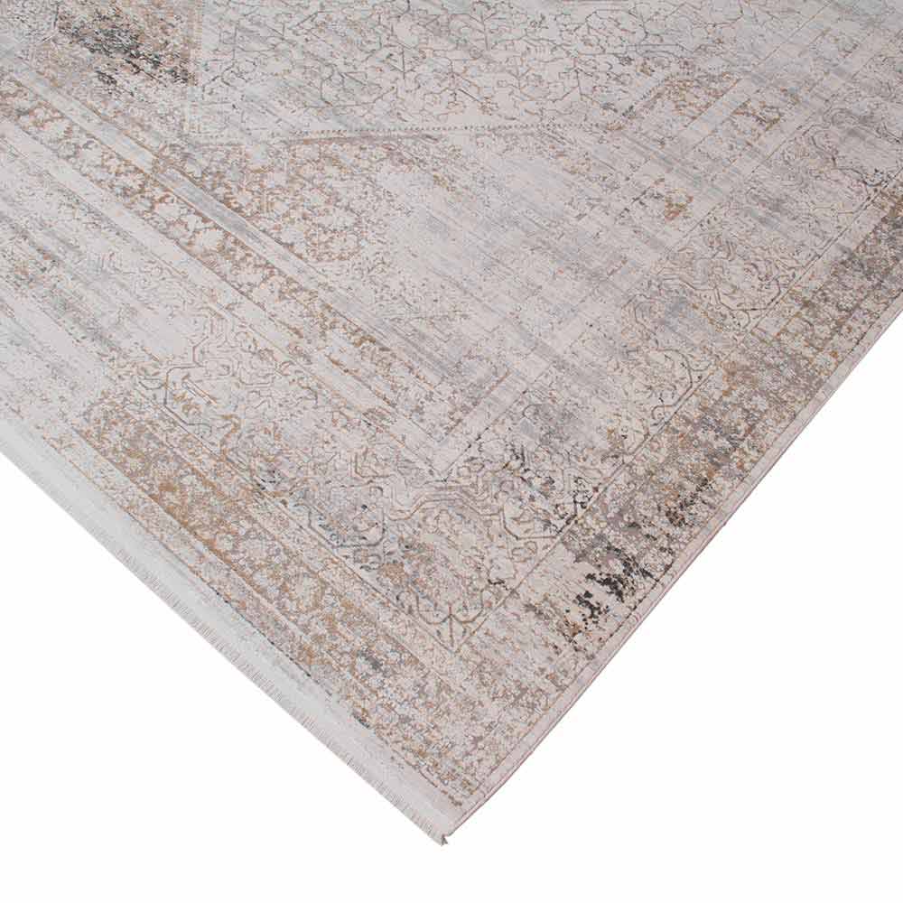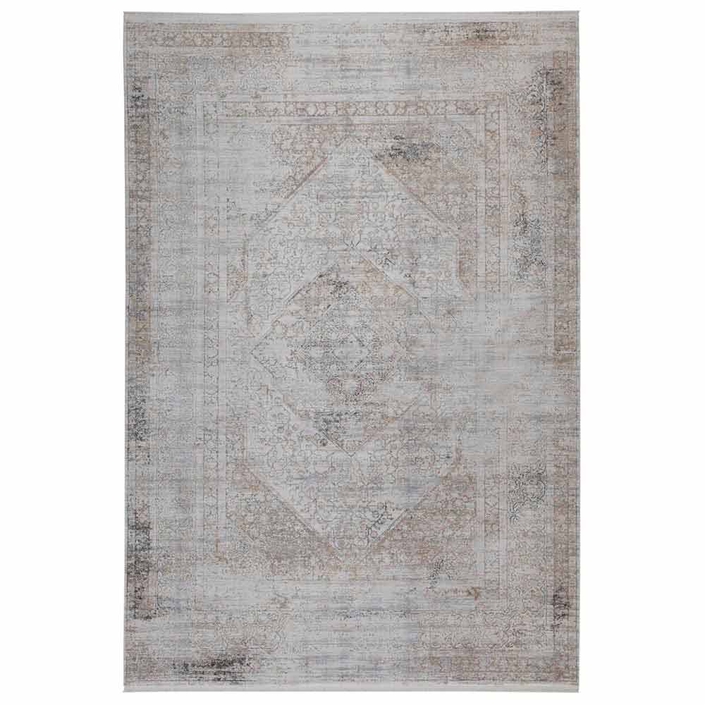 Covor non-flip vintage cu decor disponibil în două dimensiuni în gri / bej acrilic și vâscoză.