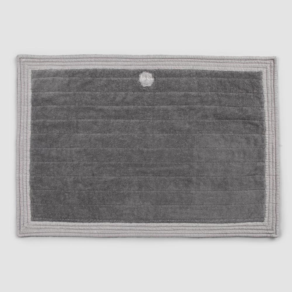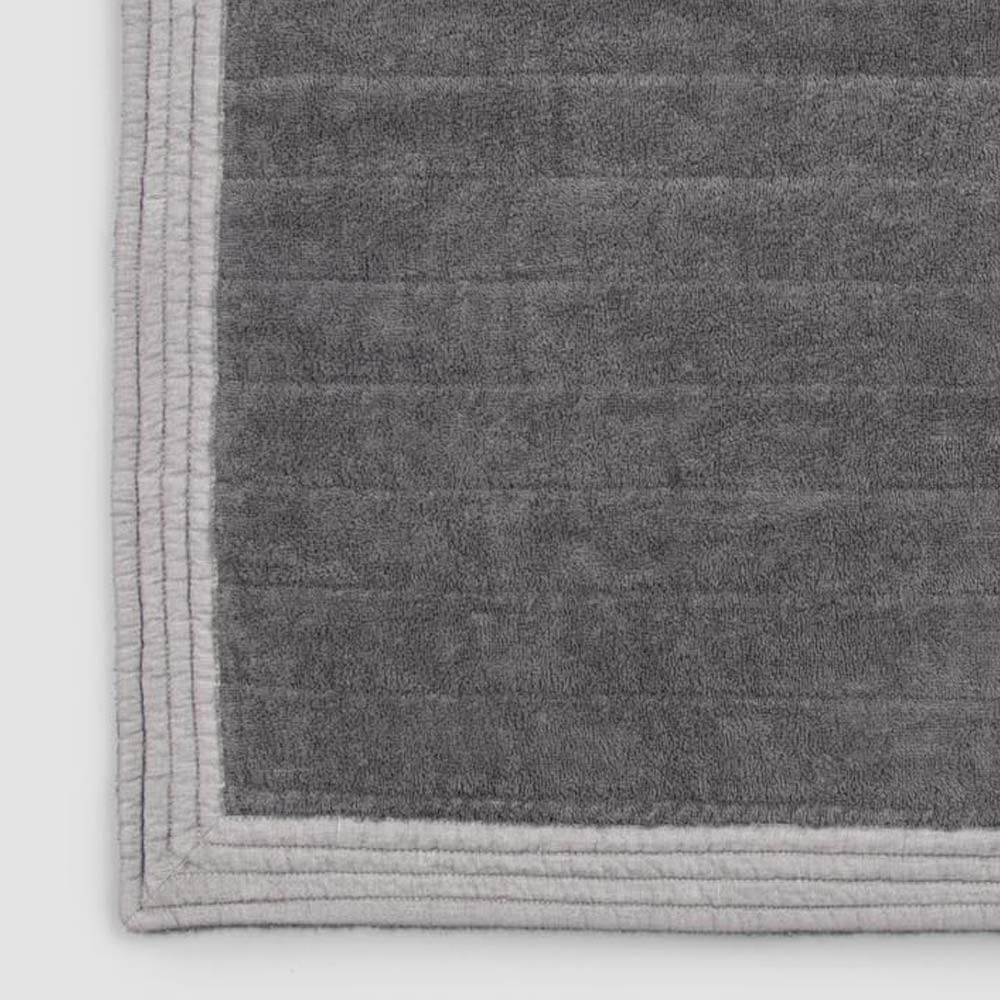 covorul de baie din țesătură de bumbac gri spălat și bordura din amestec de in pentru un stil elegant shabby chic.