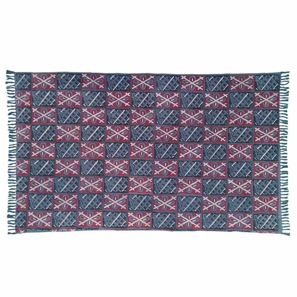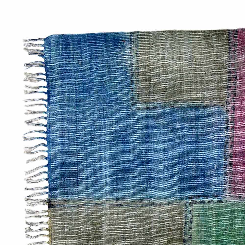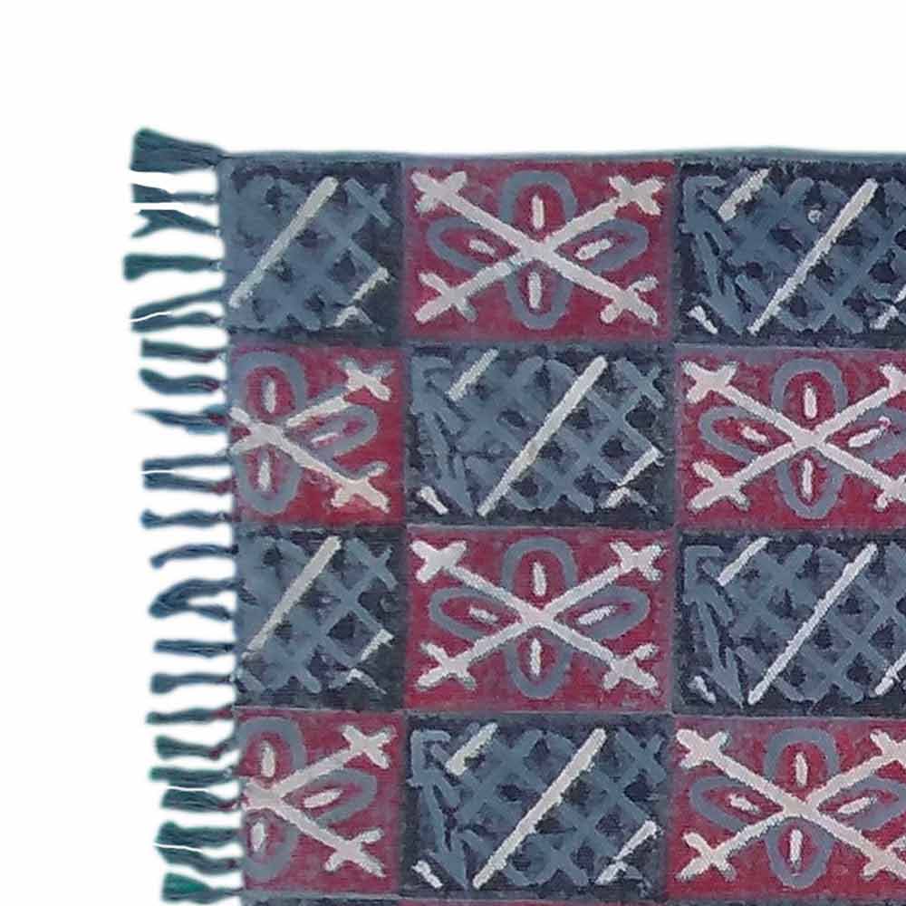 Covor colorat de design etnic produs în țesătură cu ciucuri.