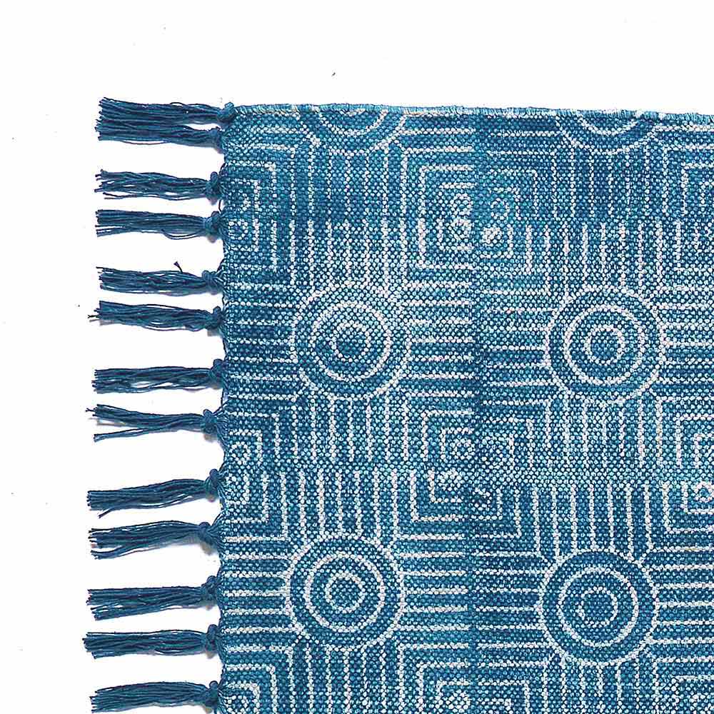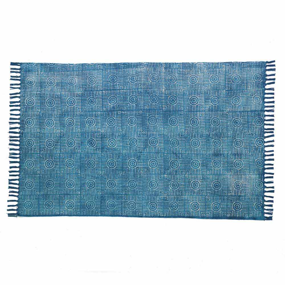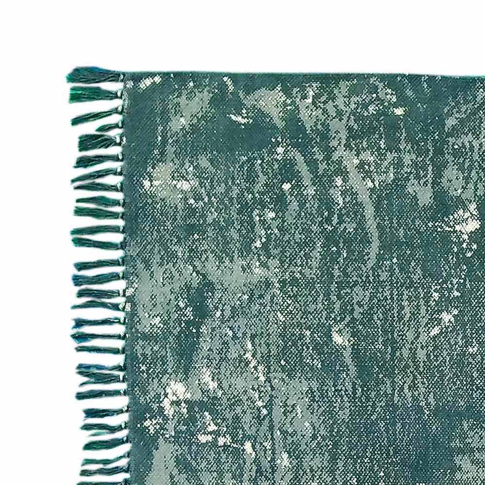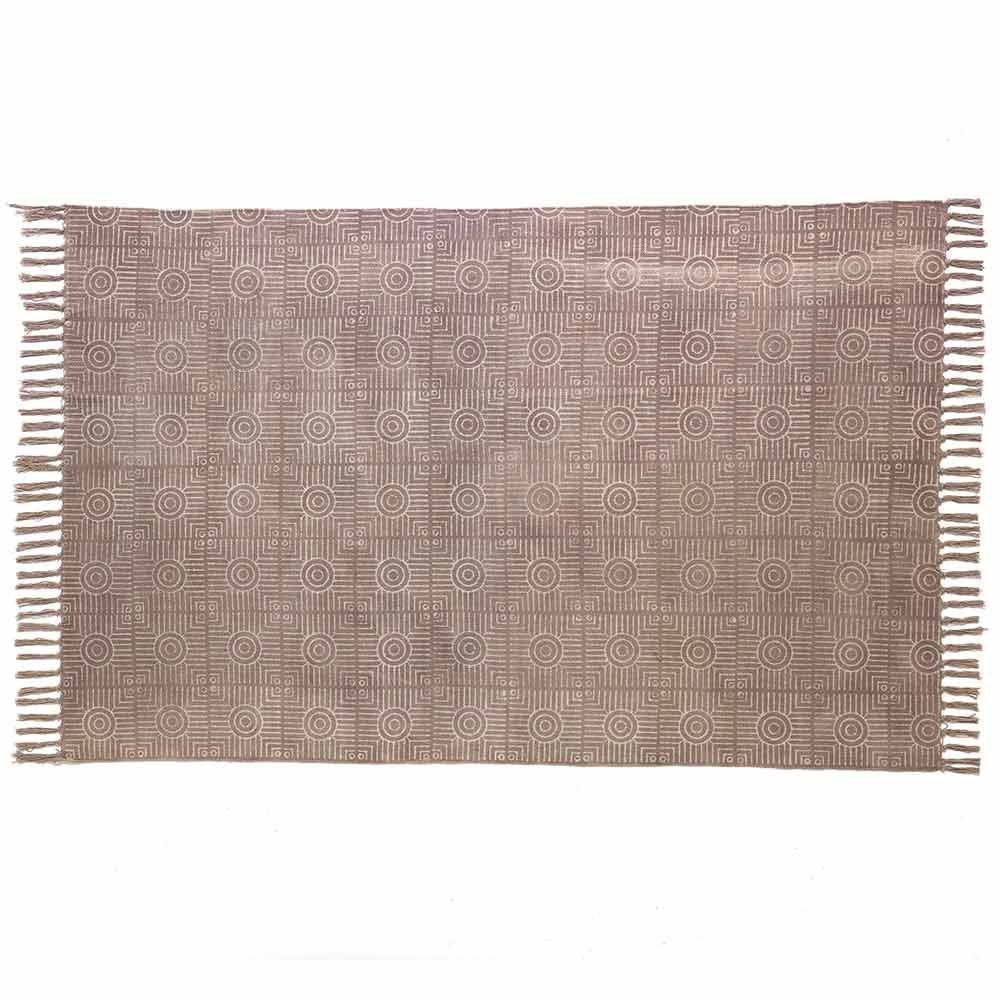 Covor colorat de design etnic produs în țesătură cu ciucuri.