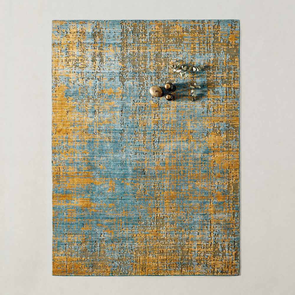 Covor modern înnodat manual din mătase de bambus și bumbac.