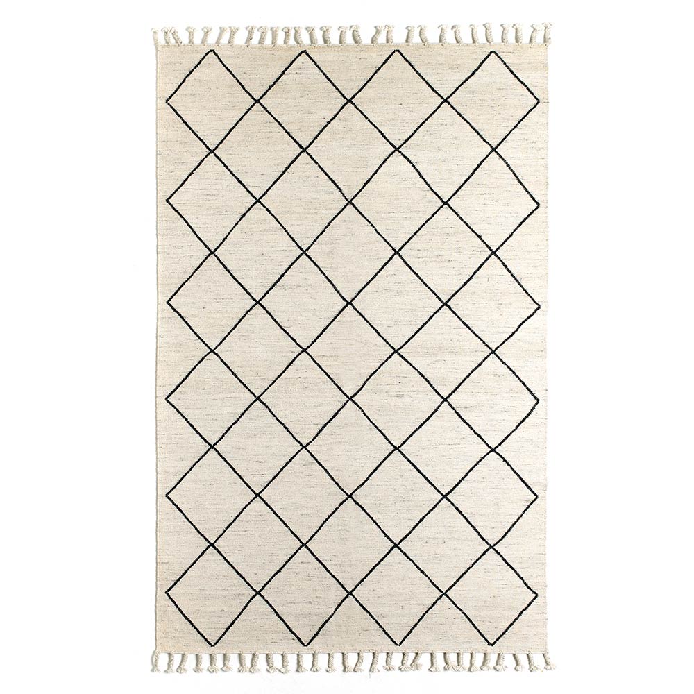 Covor de design modern, cu model geometric, din lână și bumbac.