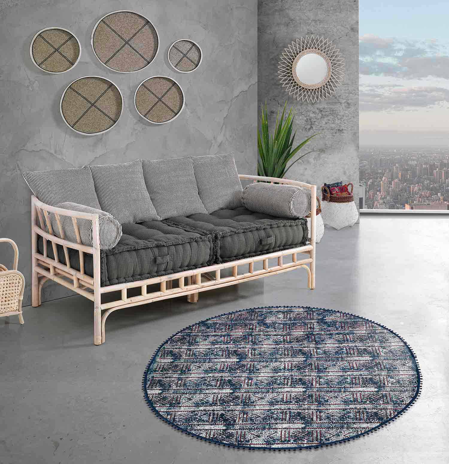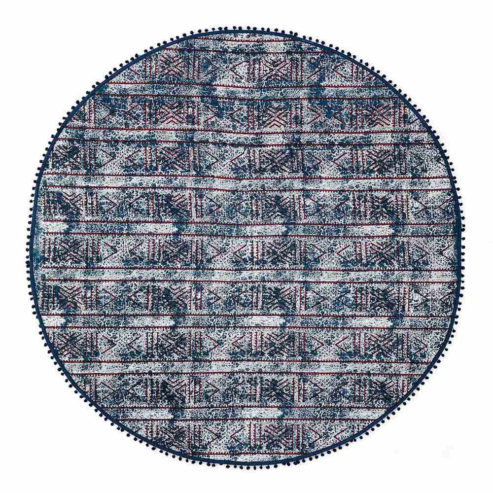 Covor rotund de design etnic în țesătură de bumbac kilim.