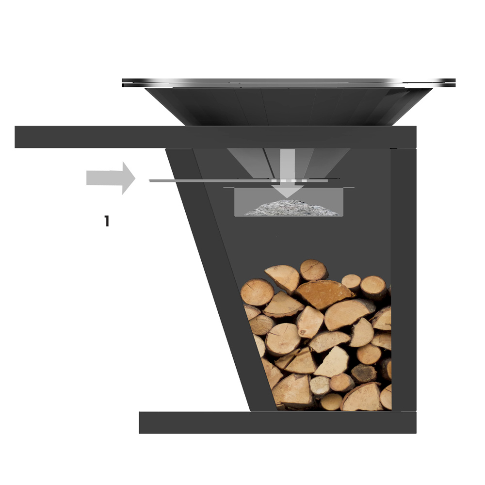 spațios încorporat încorporat în lemn, vă va garanta să mențineți mereu viu focul fără a vă deplasa de la locul de muncă.