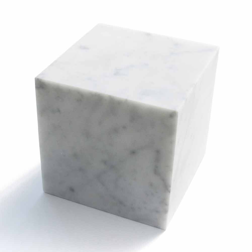 Hârtie cubică din marmură albă de Carrara . Este o piesă unică, deoarece fiecare bloc de marmură utilizat diferă de celelalte pentru vene și nuanțe datorită măiestriei profesioniștilor specializați în prelucrarea marmurei.