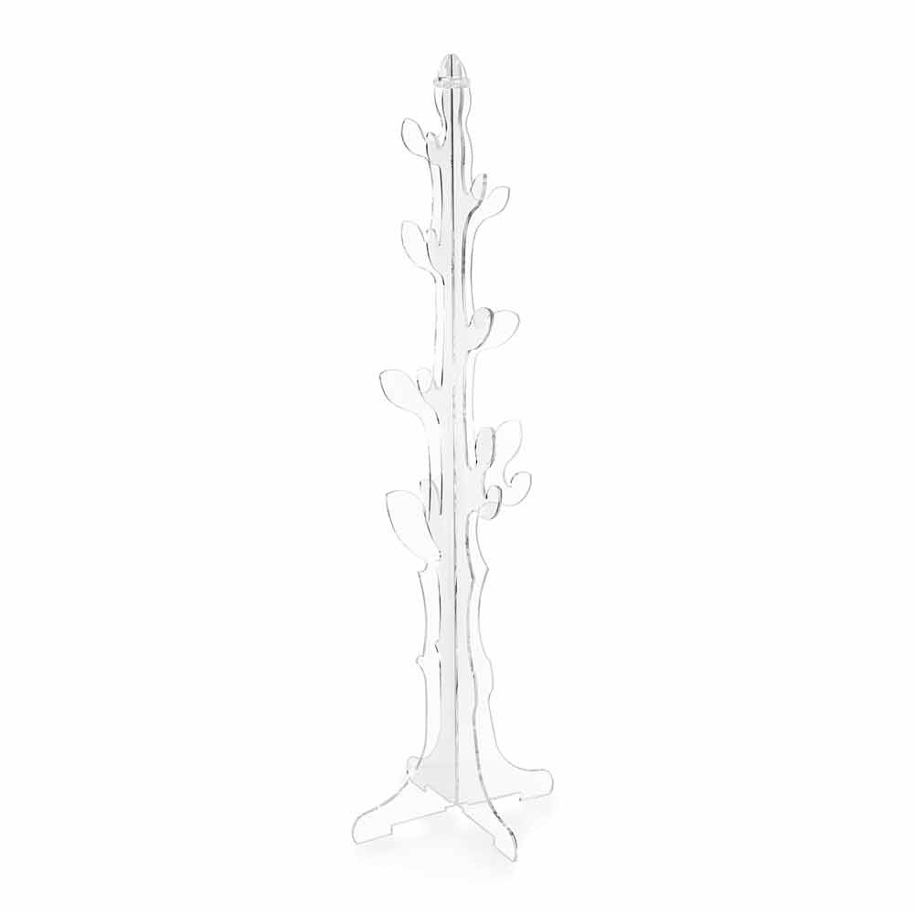 Umeraș de podea din plexiglas transparent pentru intrare cu design modern în formă de copac, fabricat în Italia.