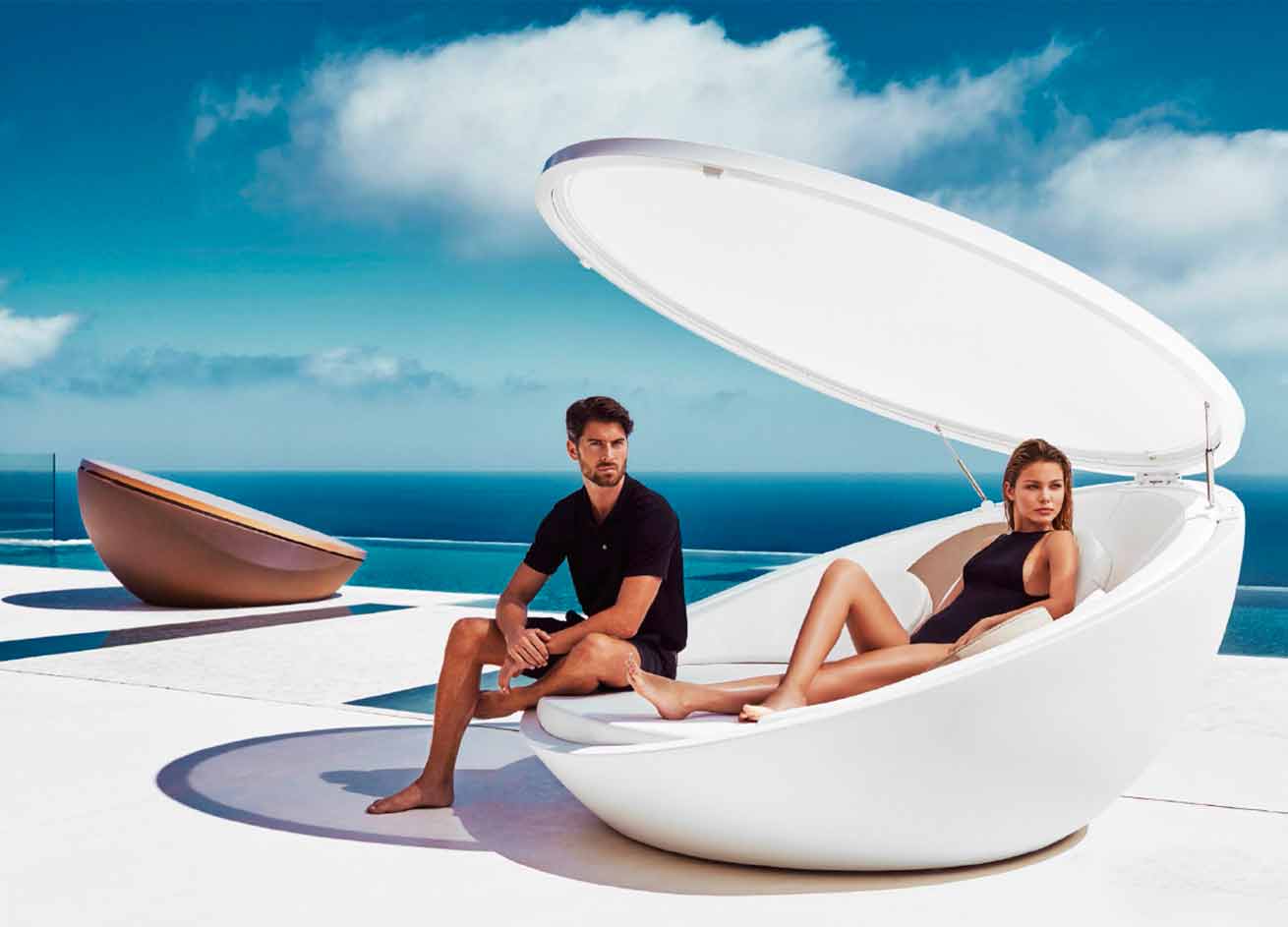 Patul de zi cuprinde structuri rigide și rezistente pentru odihnă și sprijin care oferă confort total. Materialul folosit pentru structură este polietilenă, rezistent la utri și schimbările climatice.